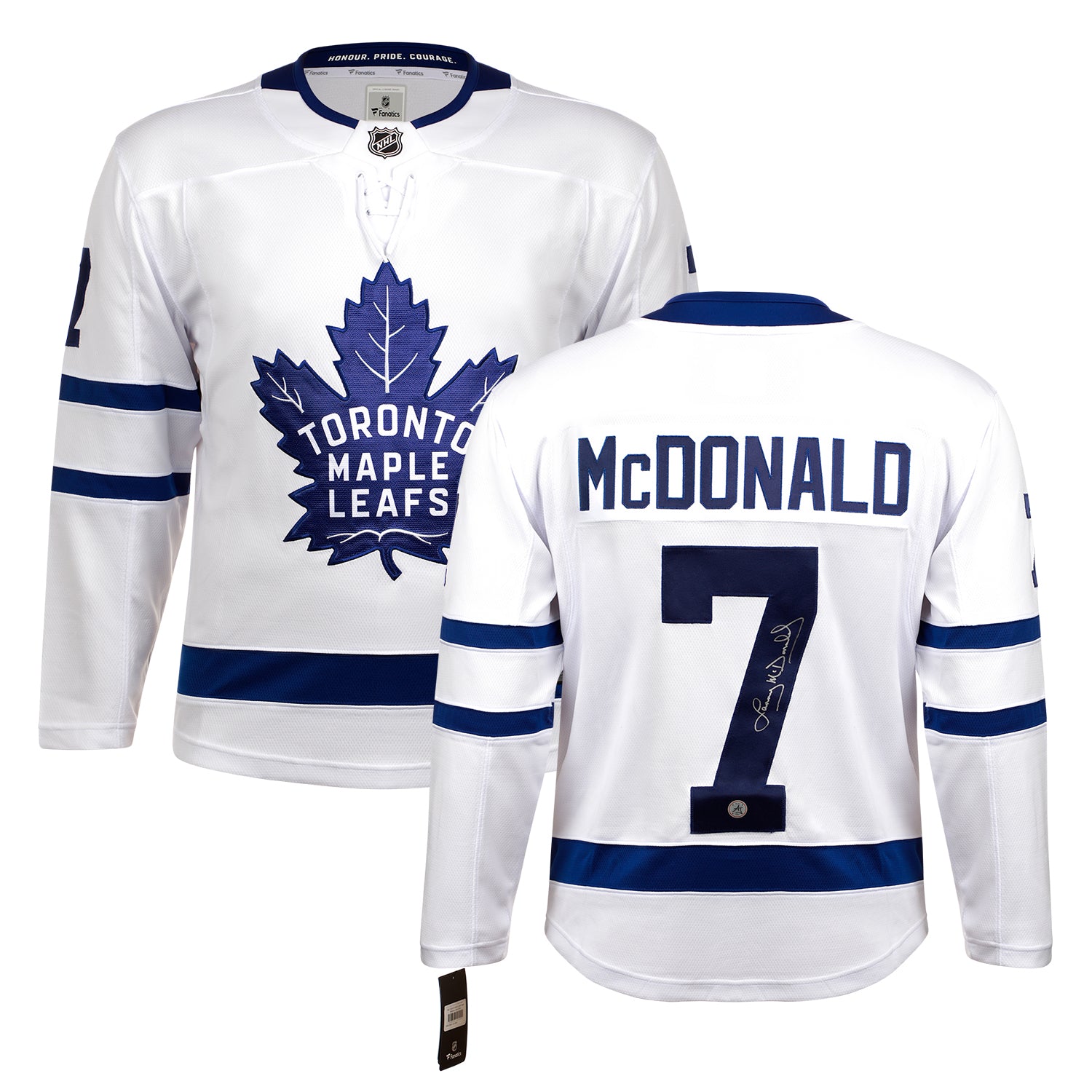 • This hockey jersey is hand-signed by Lanny McDonald.