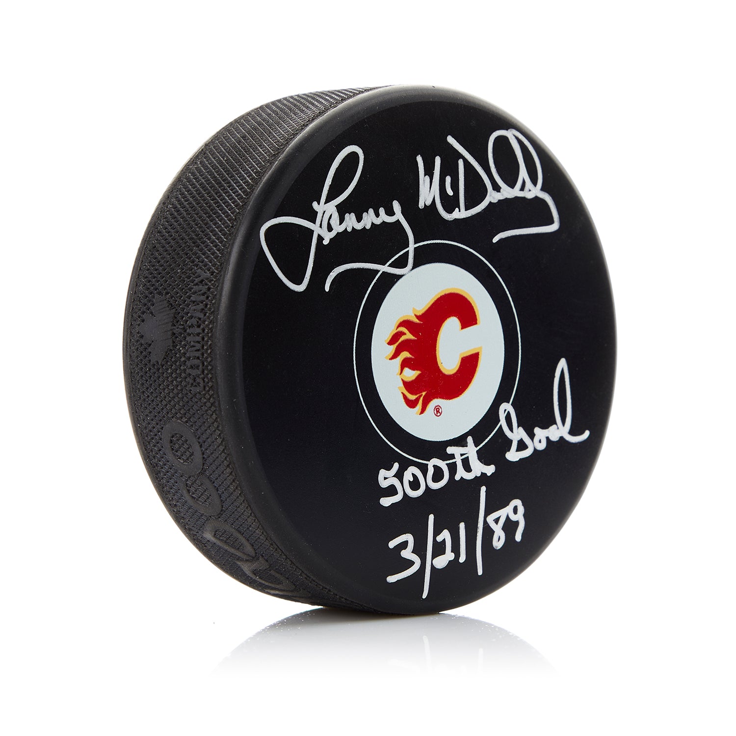 Lanny McDonald Signed Calgary Flames Puck with 500 Goal Note