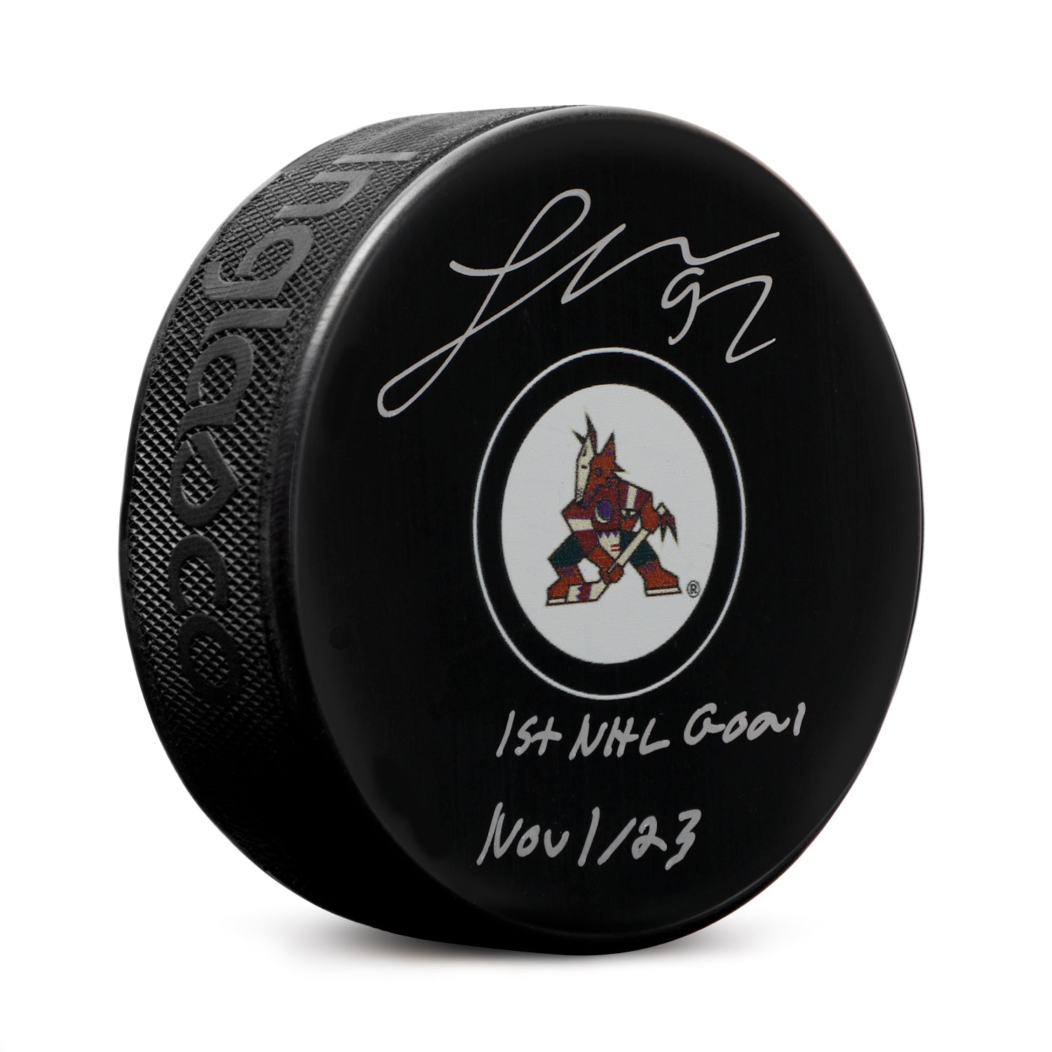 Logan Cooley Arizona Coyotes Signed & Dated 1st NHL Goal Puck