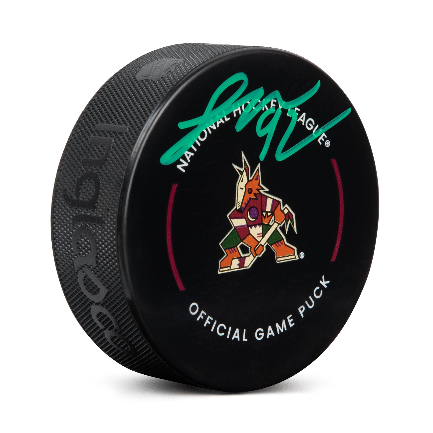 Logan Cooley Autographed Arizona Coyotes Official Game Puck