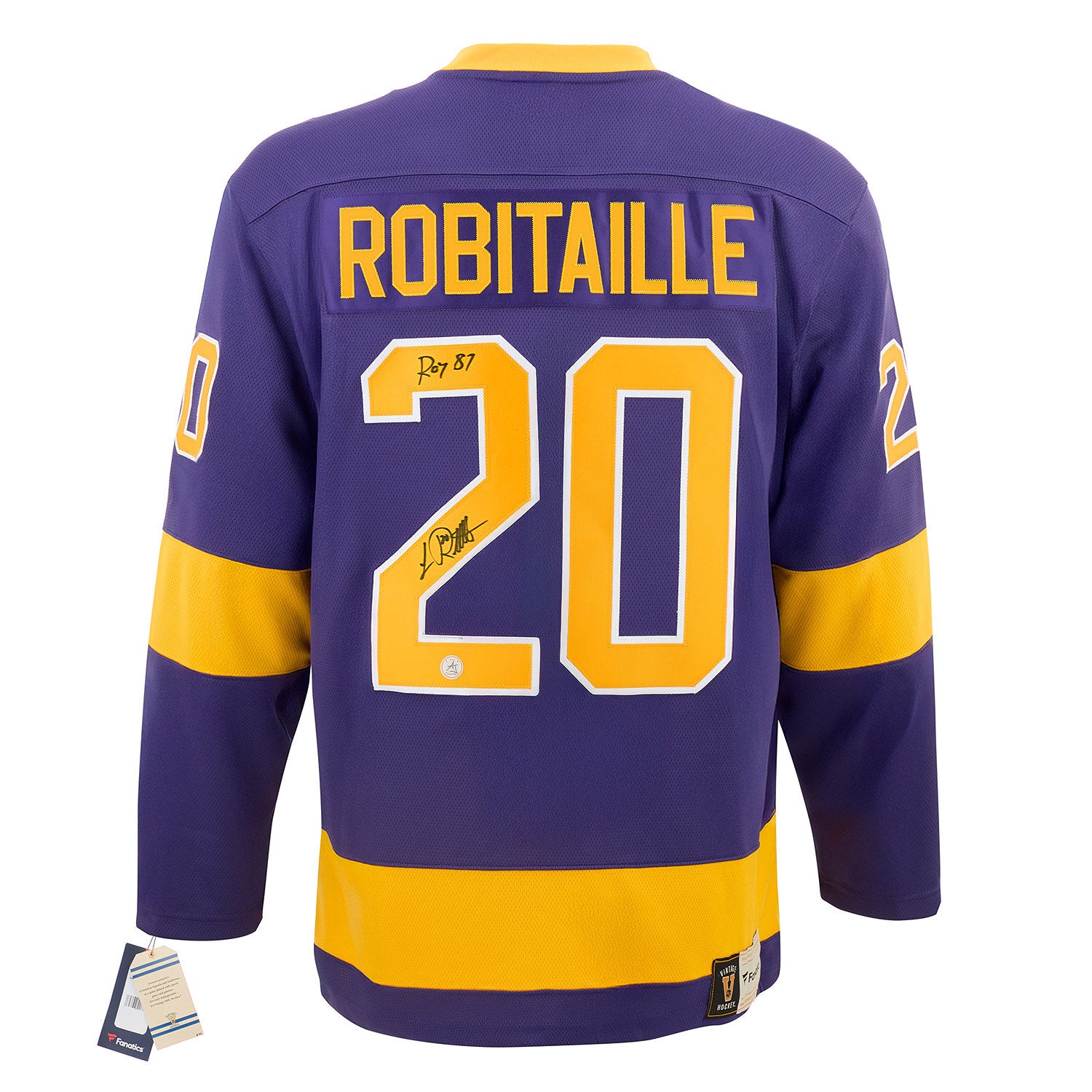Luc Robitaille Signed Los Angeles Kings Rookie Fanatics Throwback Jersey with ROY Note