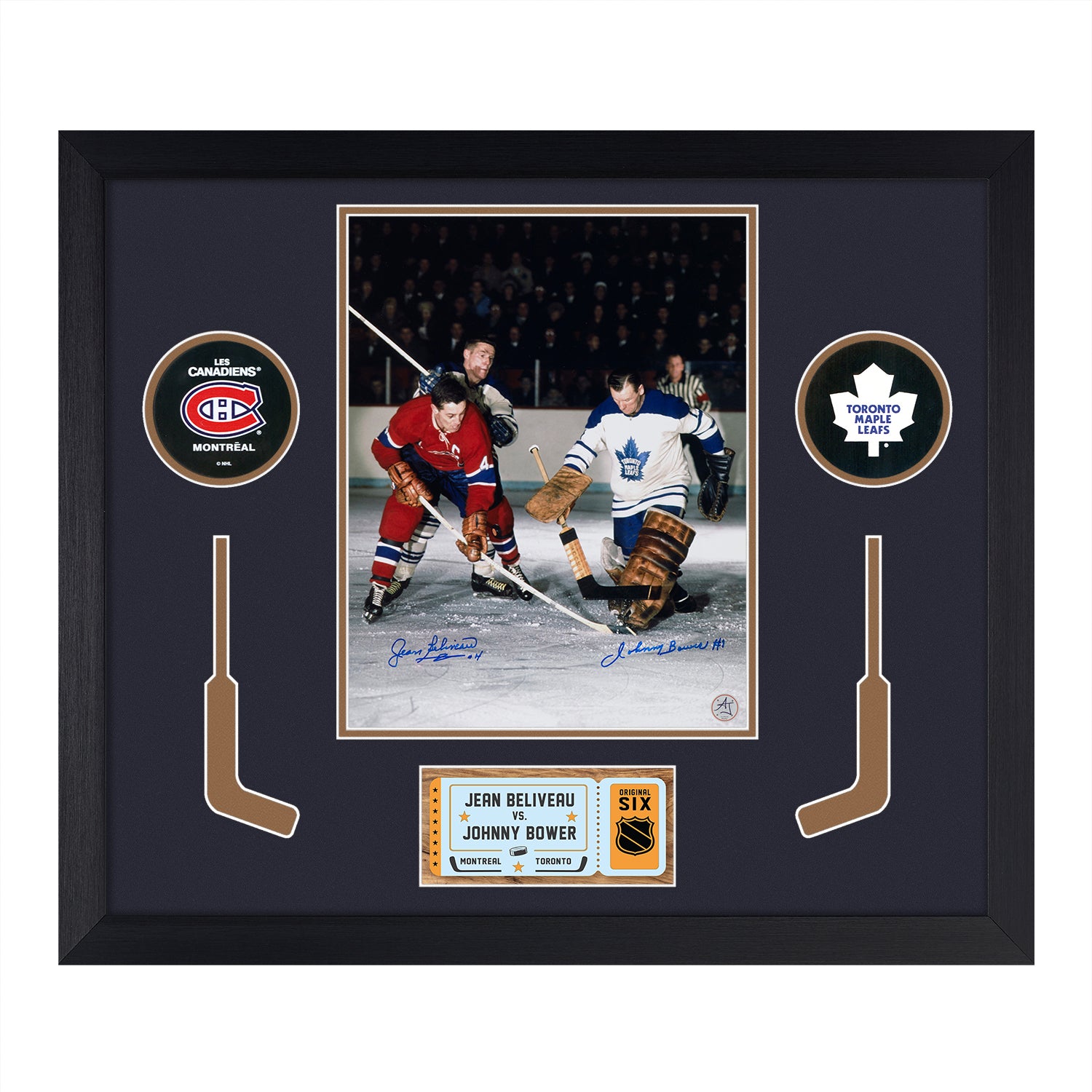 Jean Beliveau & Johnny Bower Dual Signed Hockey Rivalry 24x28 Frame