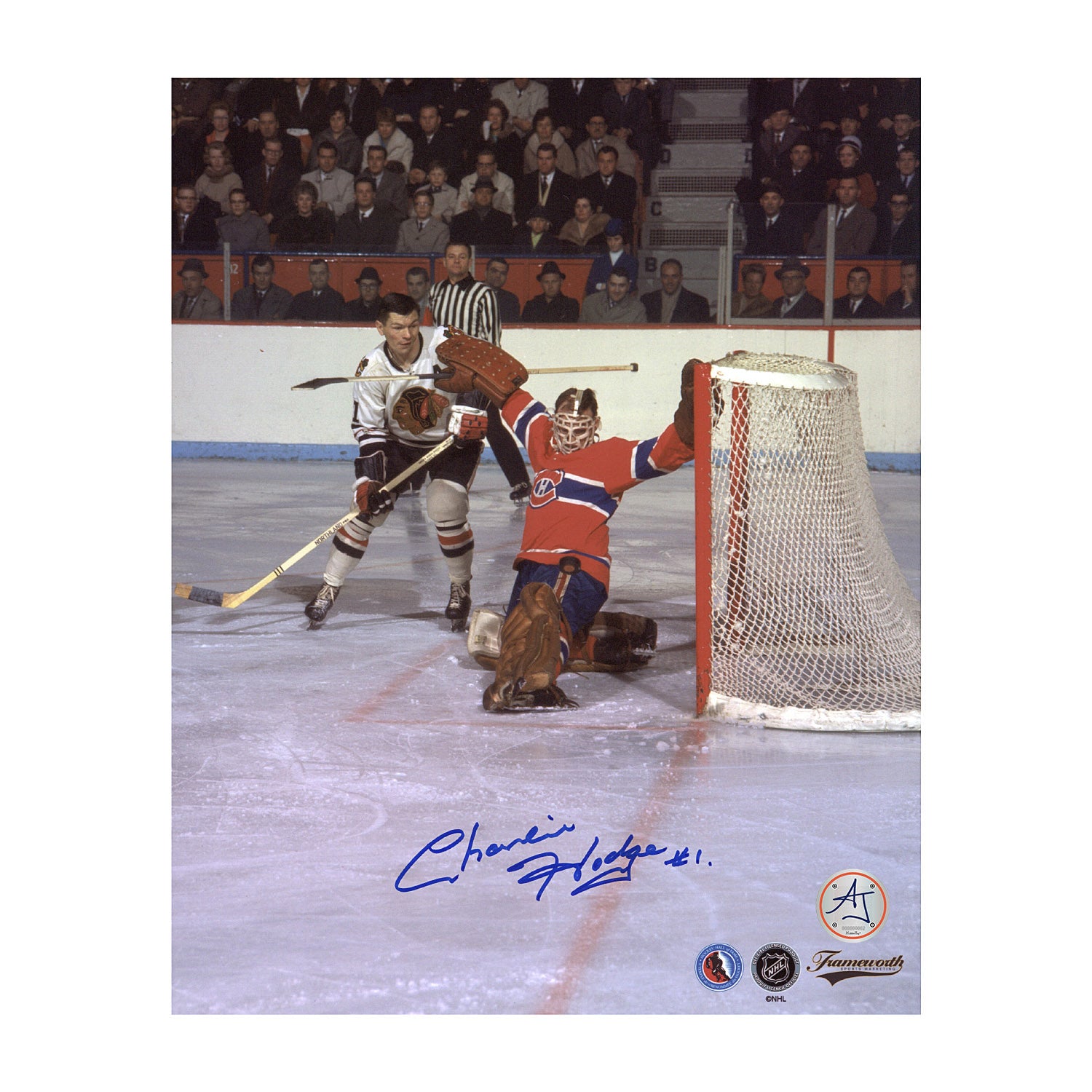 Charlie Hodge Signed Montreal Canadiens Save vs Mikita 8x10 Photo