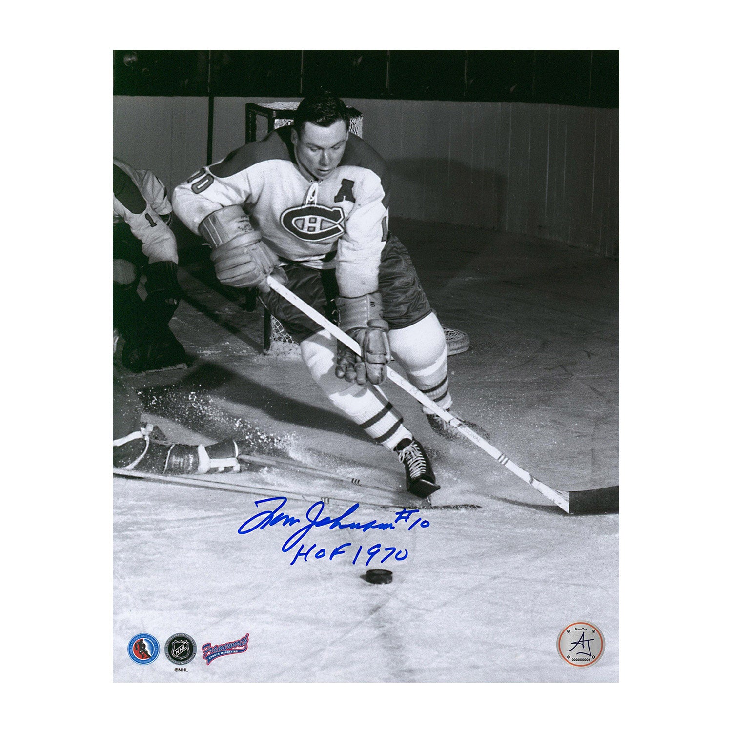 Tom Johnson Signed Montreal Canadiens Black & White 8x10 Photo with Note