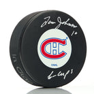 Tom Johnson Montreal Canadiens Signed Hockey Puck with 6 Cups Inscription