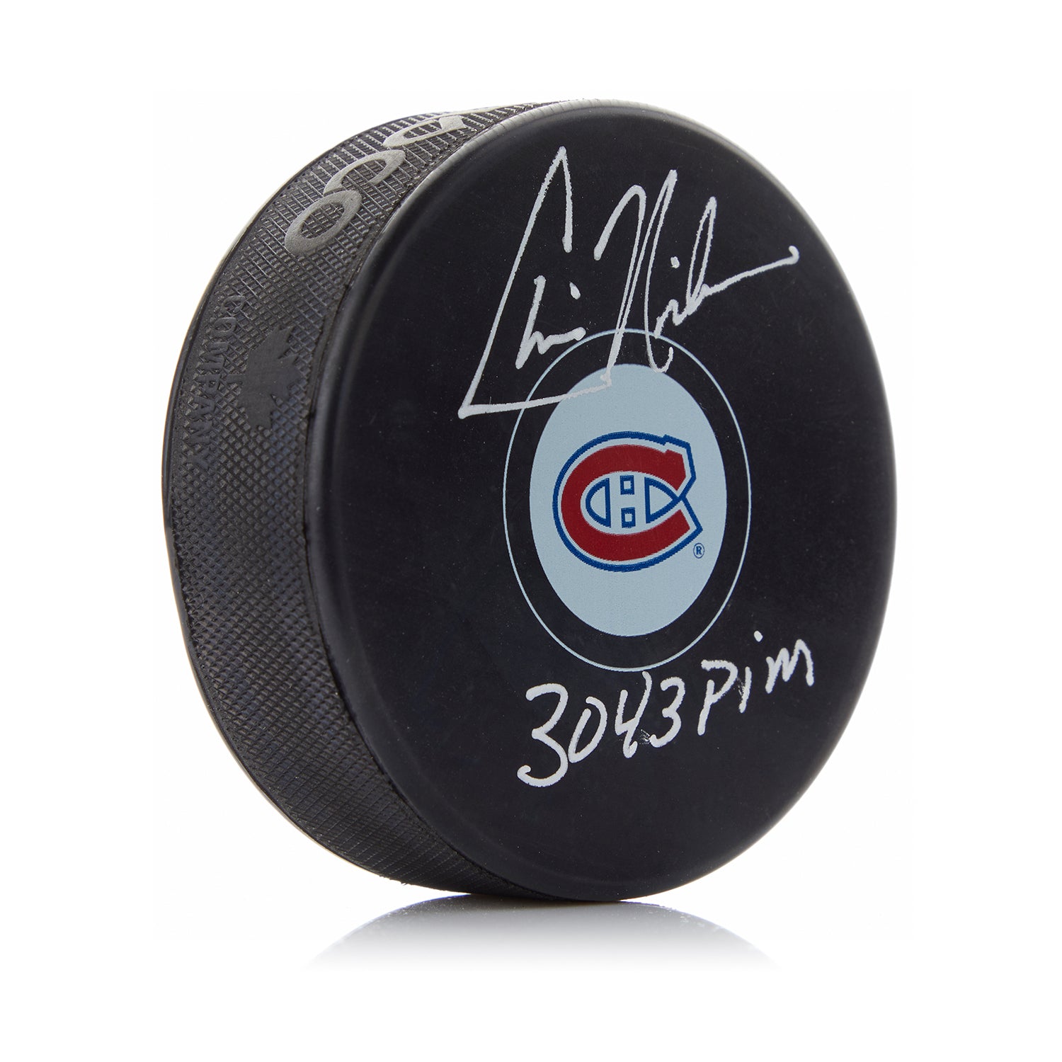 Chris Nilan Signed Montreal Canadiens Puck with PIMs Note