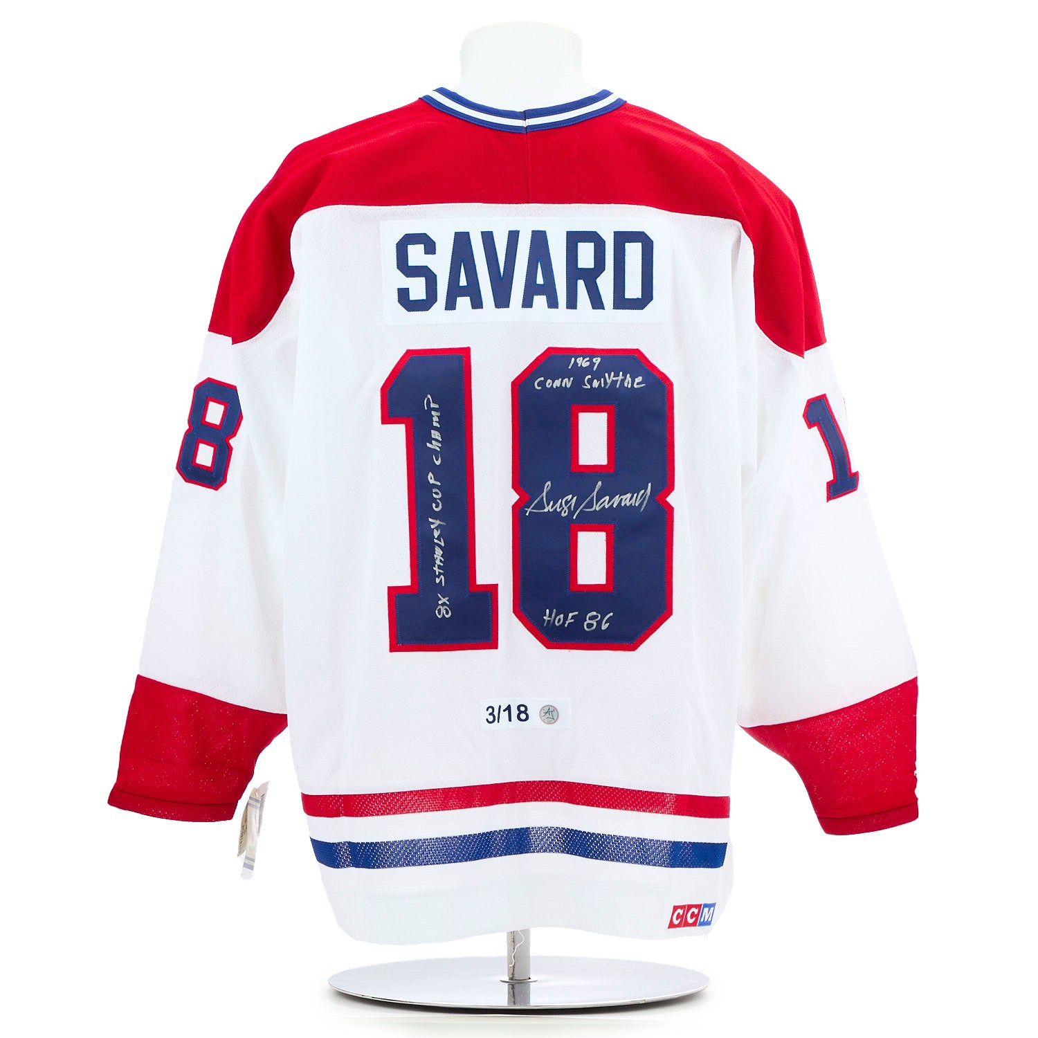 Serge Savard Montreal Canadiens Signed Career Stats CCM Jersey #3/18