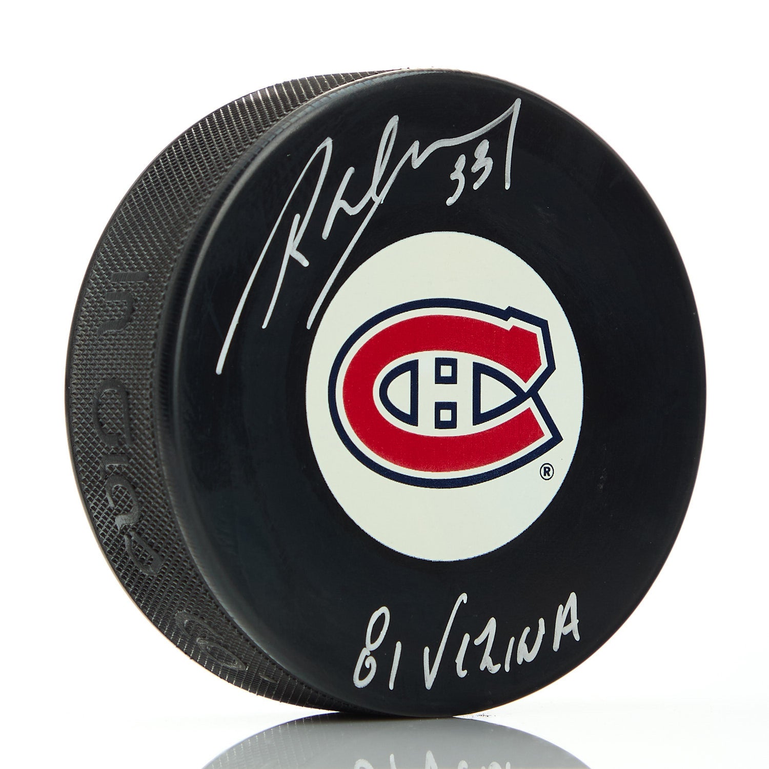 Richard Sevigny Montreal Canadiens Signed Hockey Puck with 81 Vezina Note