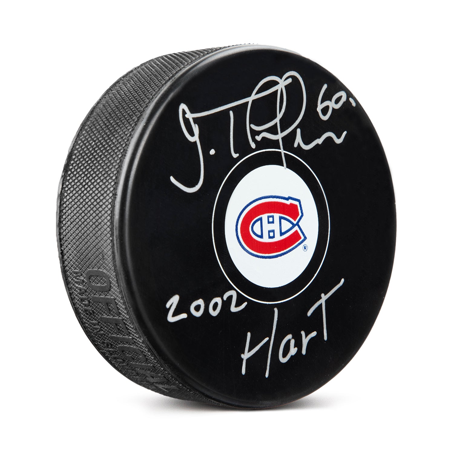 Jose Theodore Signed Montreal Canadiens Puck with 2002 Hart Note