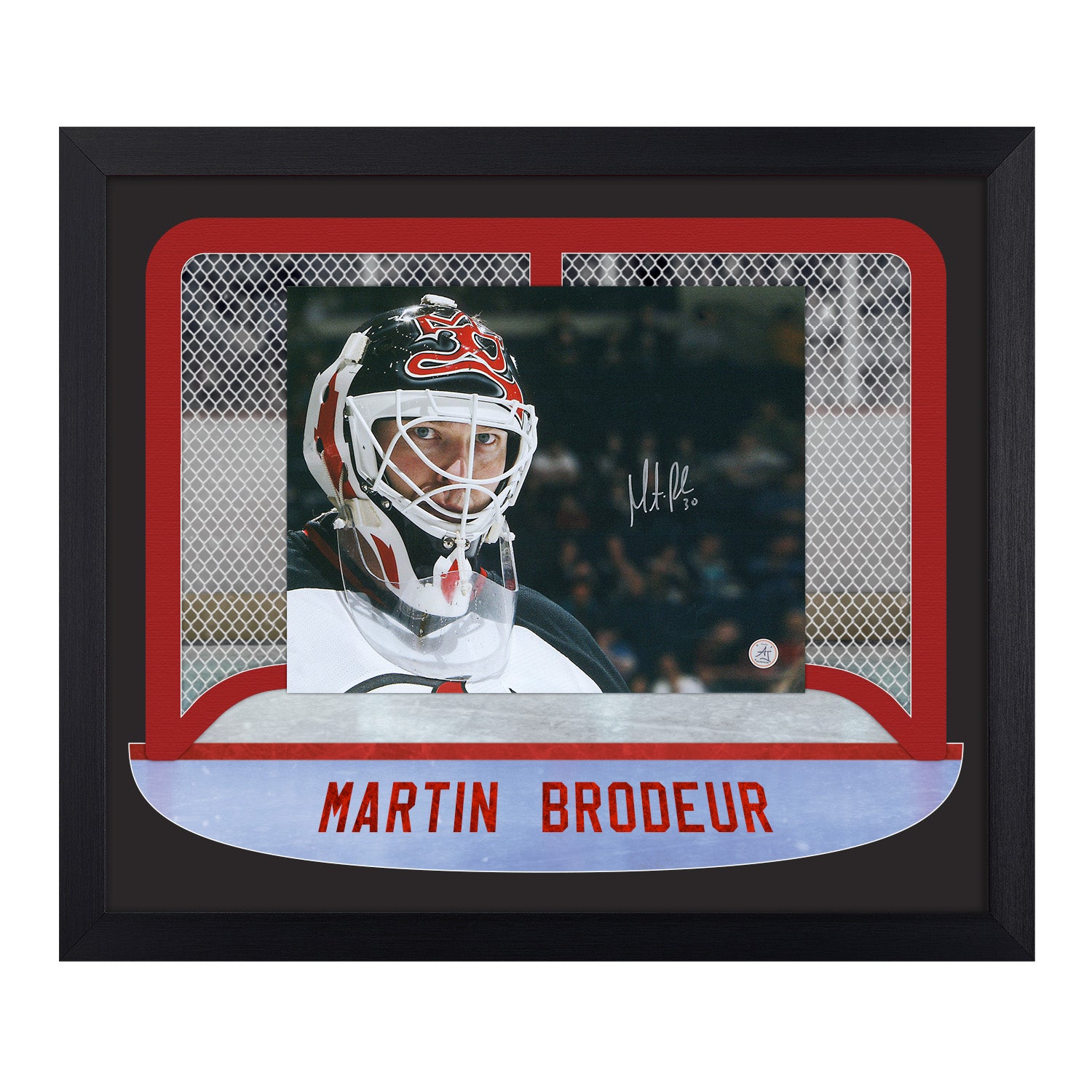 Martin Brodeur Signed New Jersey Devils Goalie Mask Between The Pipes 23x27 Frame