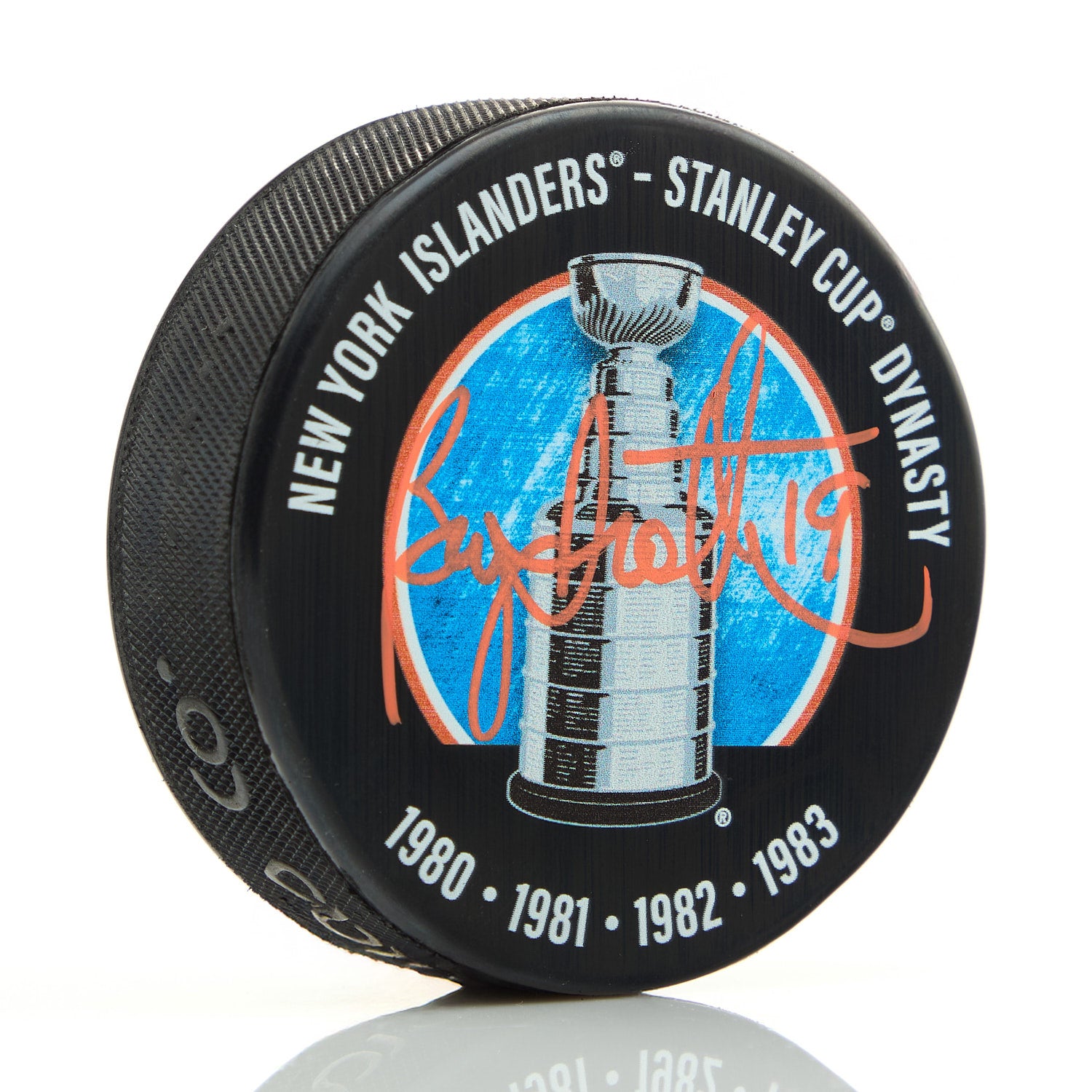 Bryan Trottier Autographed New York Islanders Dyansty Stanley Cup Champions Souvenir Hockey Puck