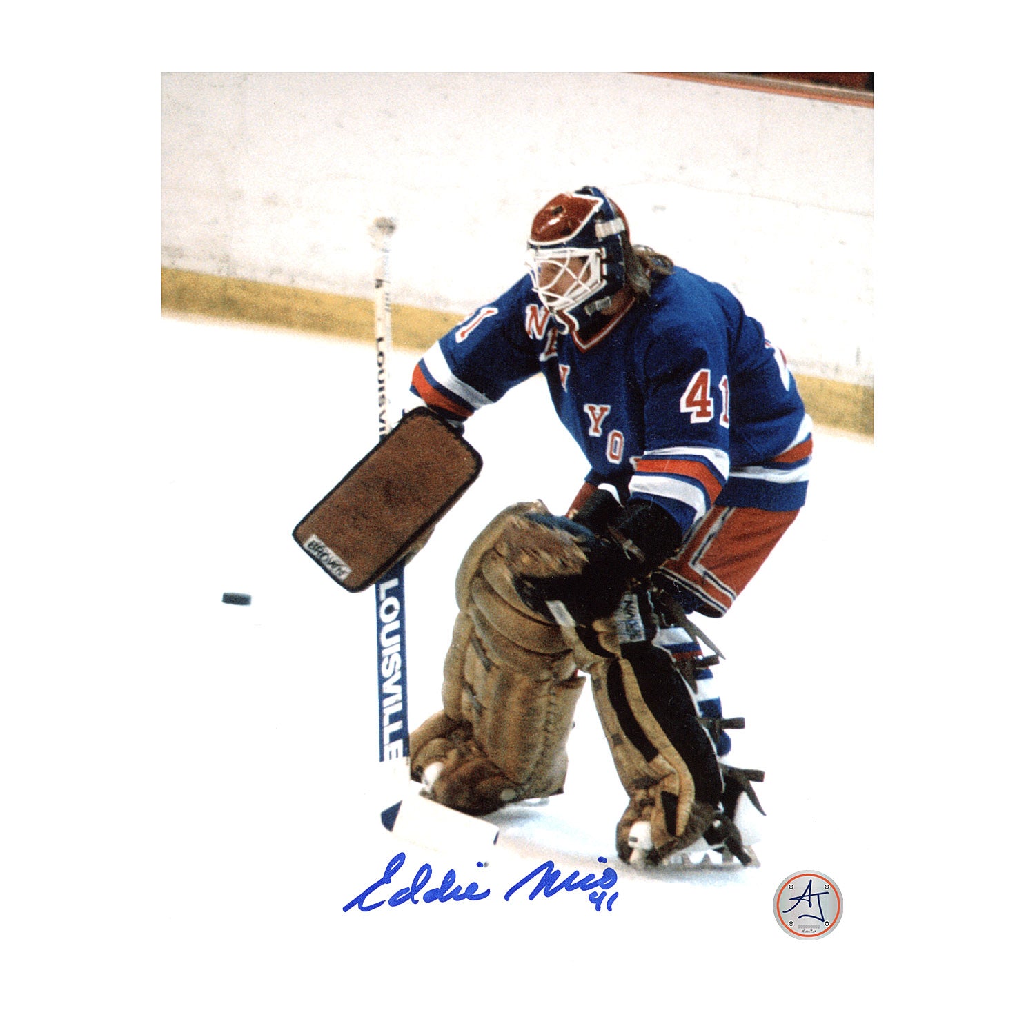 Eddie Mio New York Rangers Autographed Hockey Goalie 8x10 Photo