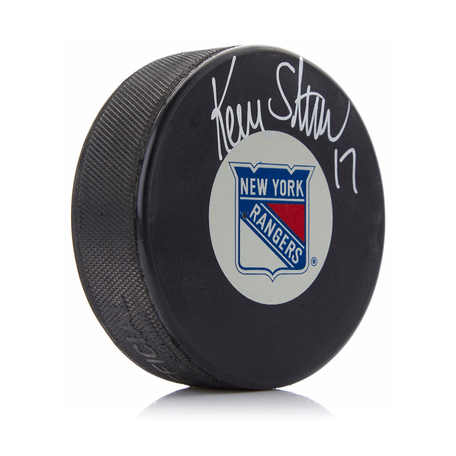 Kevin Stevens Autographed New York Rangers Hockey Puck. Product Code STEKNYR22PKA01.