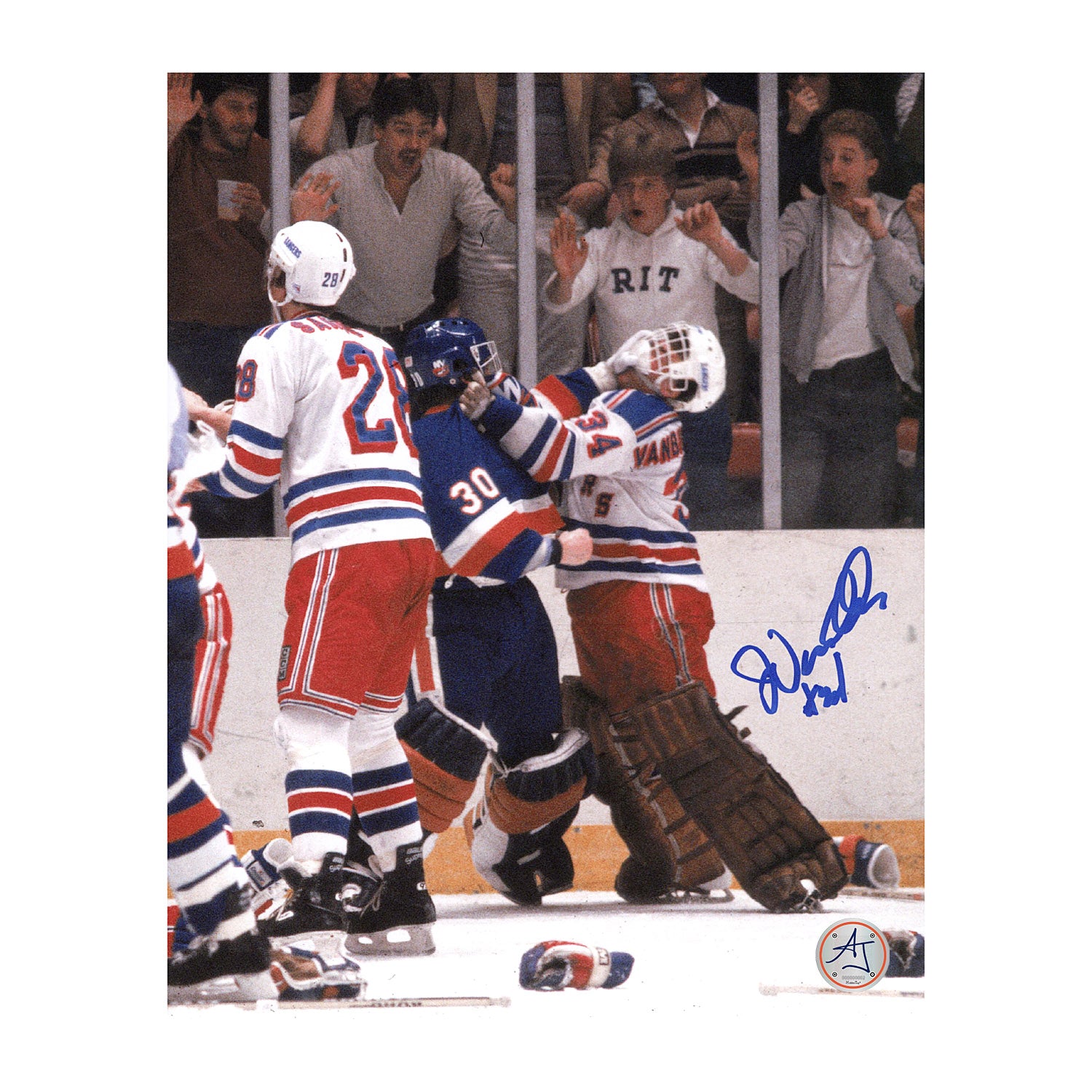 John Vanbiesbrouck Signed New York Rangers Goalie Fight 8x10 Photo