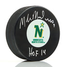 Mike Modano Autographed Minnesota North Stars Retro Logo Puck with HOF Note