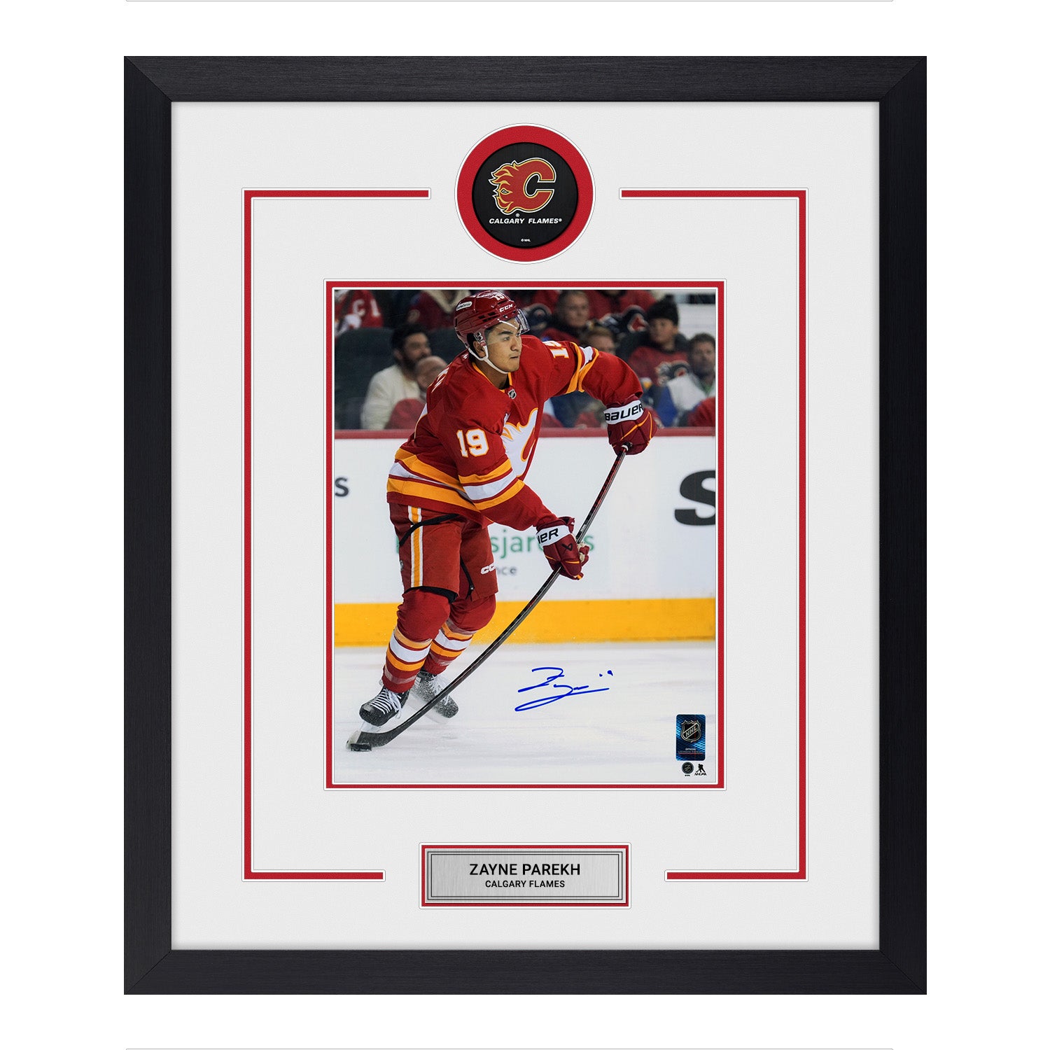 Zayne Parekh Autographed Calgary Flames Puck Logo 22x26 Frame