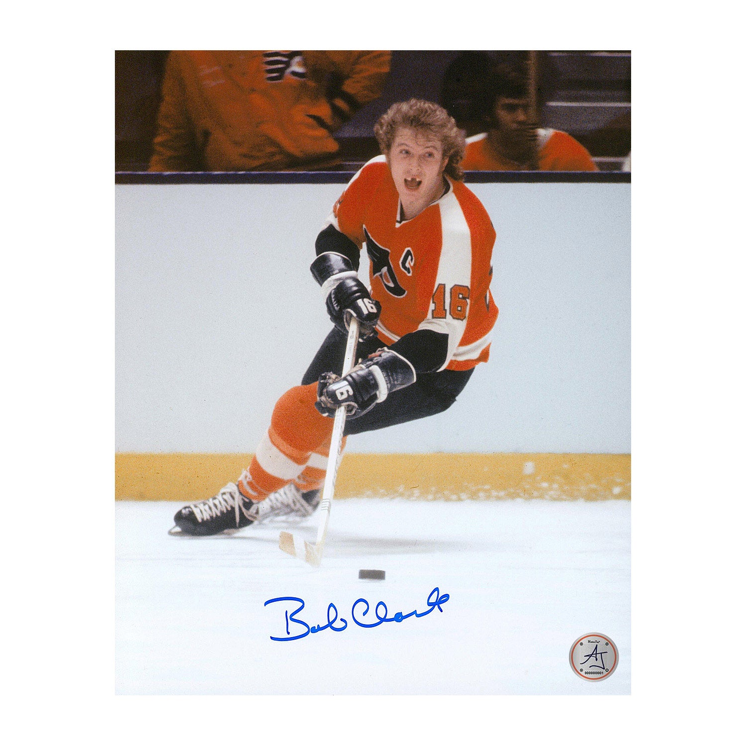 • This 8x10 photo is hand-signed by Bobby Clarke.