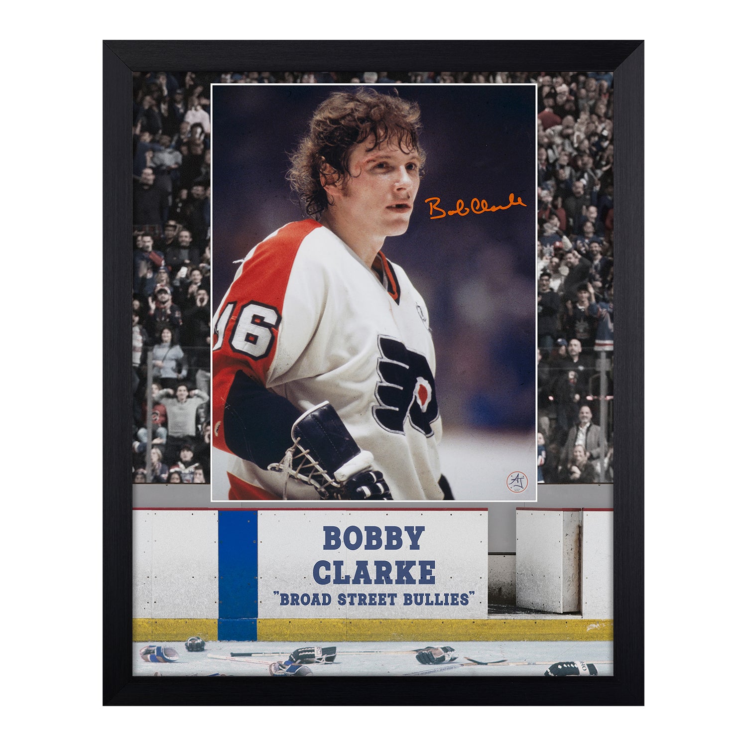 Bobby Clarke Autographed Philadelphia Flyers Hockey Warrior 19x23 Frame