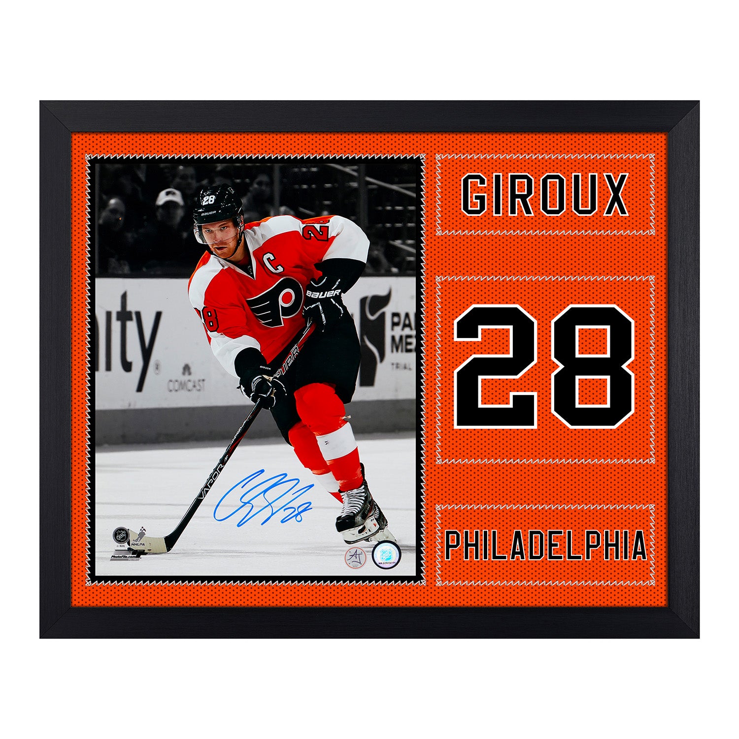 Claude Giroux Autographed Philadelphia Flyers Uniform Graphic 19x23 Frame. Product Code GIRCPFL22P4AF1.