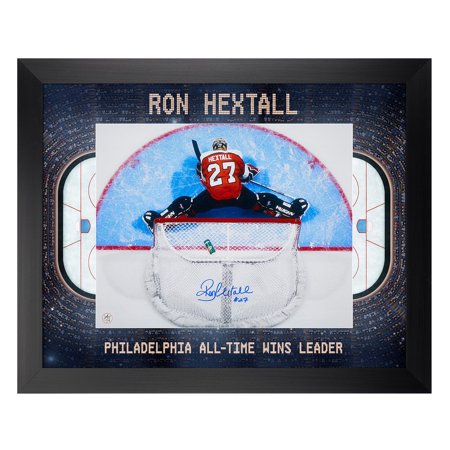 Ron Hextall Signed Philadelphia Flyers Hockey Arena Aerial View 26x32 Frame