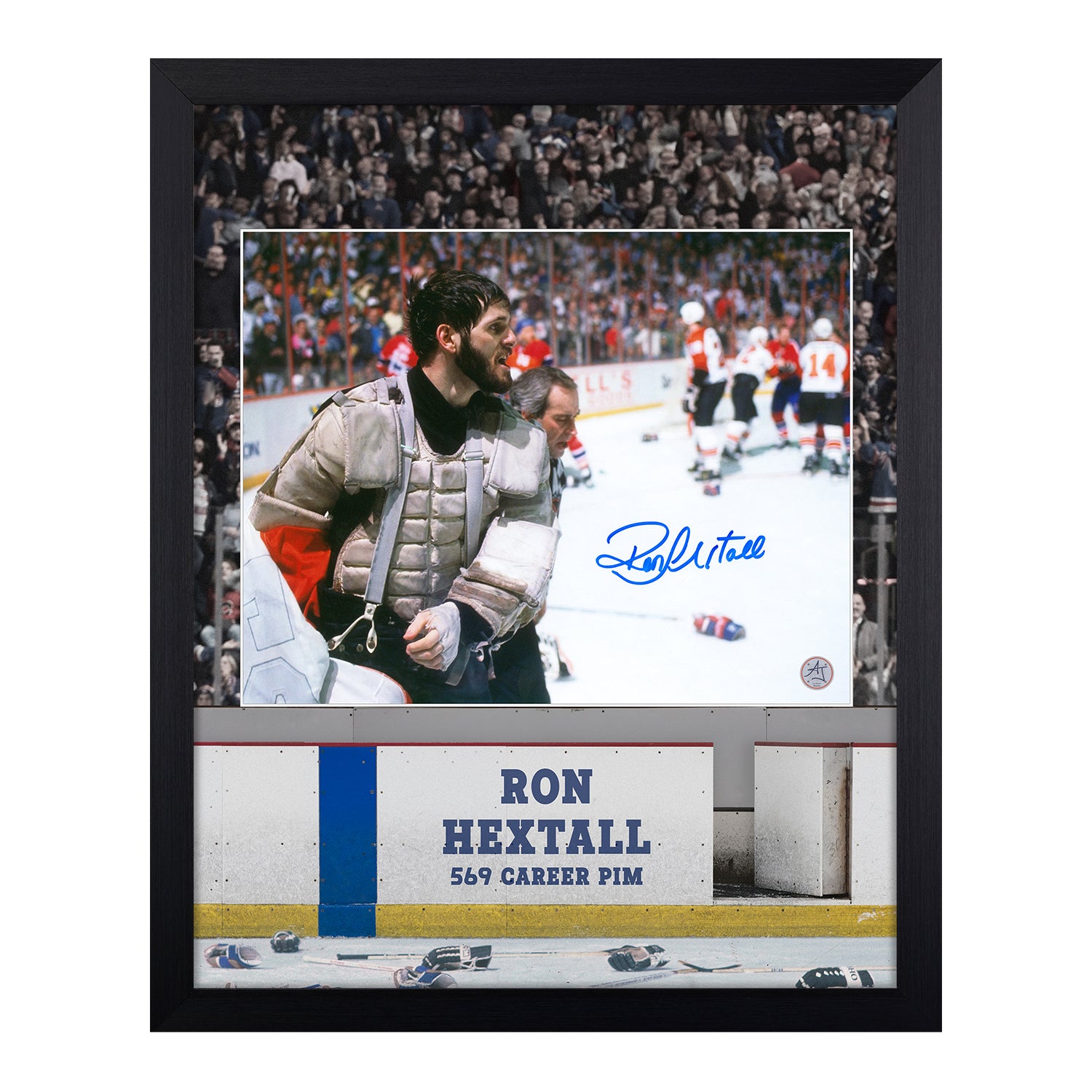 Ron Hextall Autographed Philadelphia Flyers Hockey Warrior 19x23 Frame