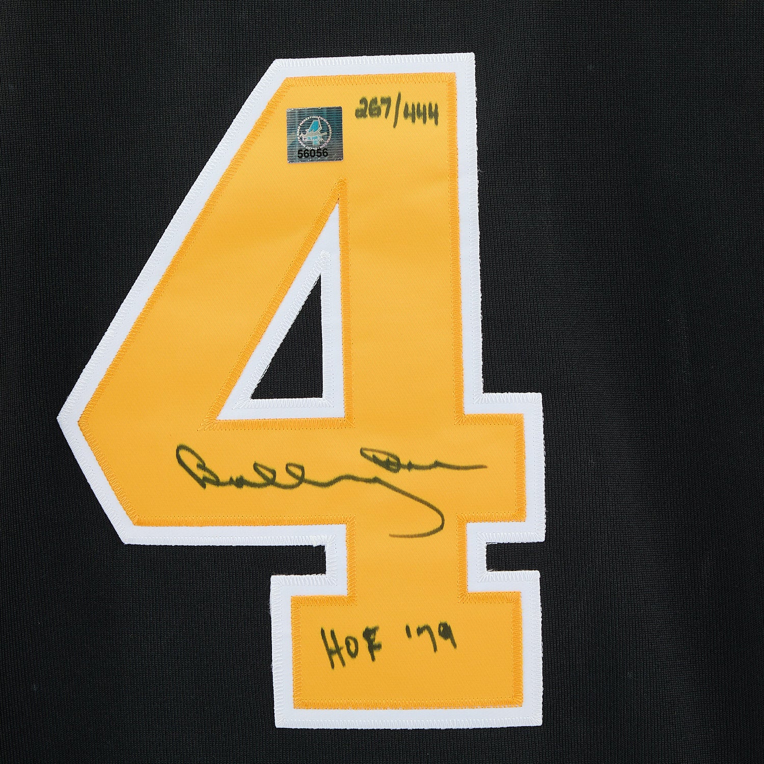• This hockey jersey is signed and inscribed with HOF '79 by Bobby Orr.