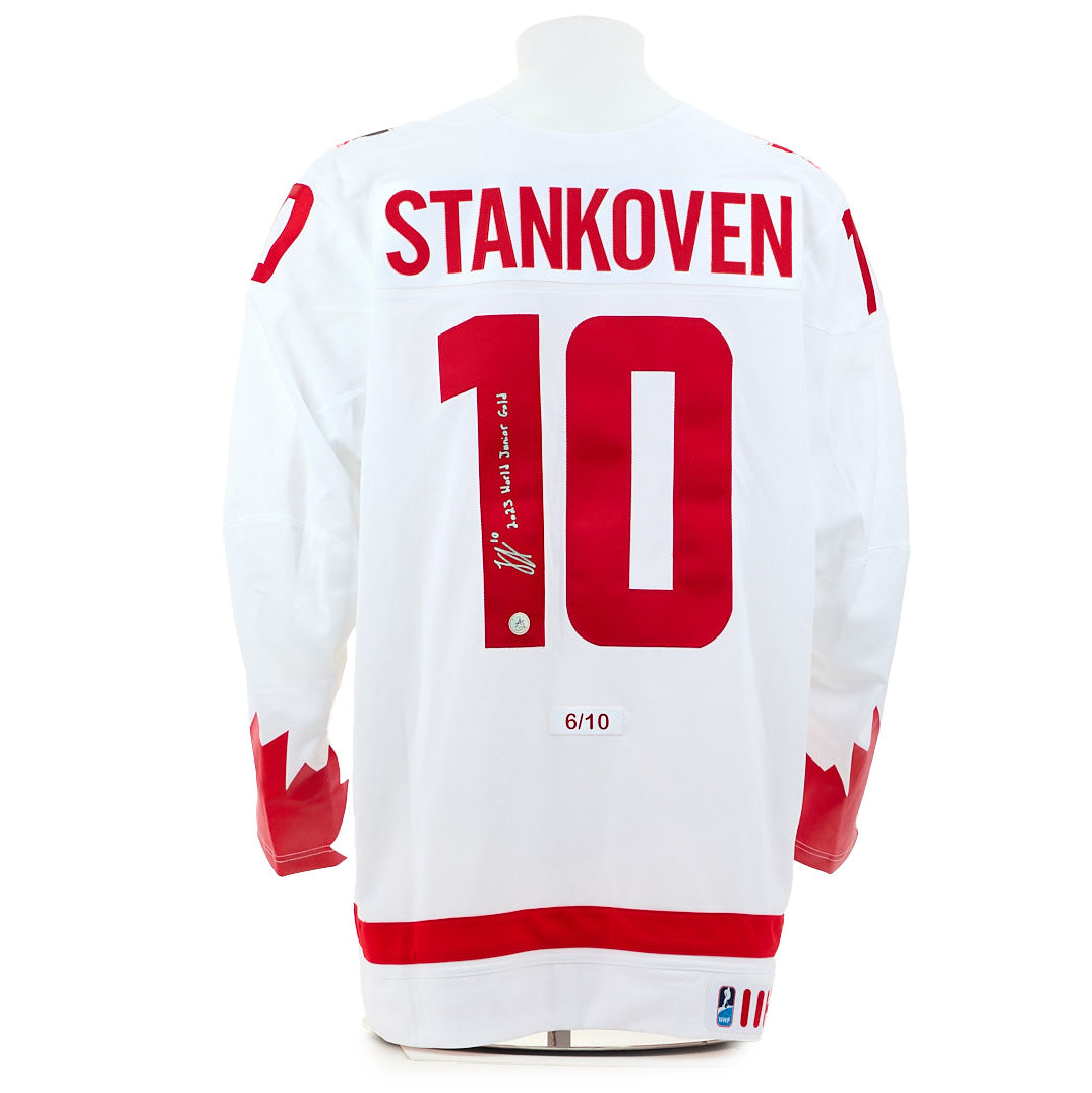 Logan Stankoven Signed Team Canada Nike Jersey with Junior Gold Note #6/10