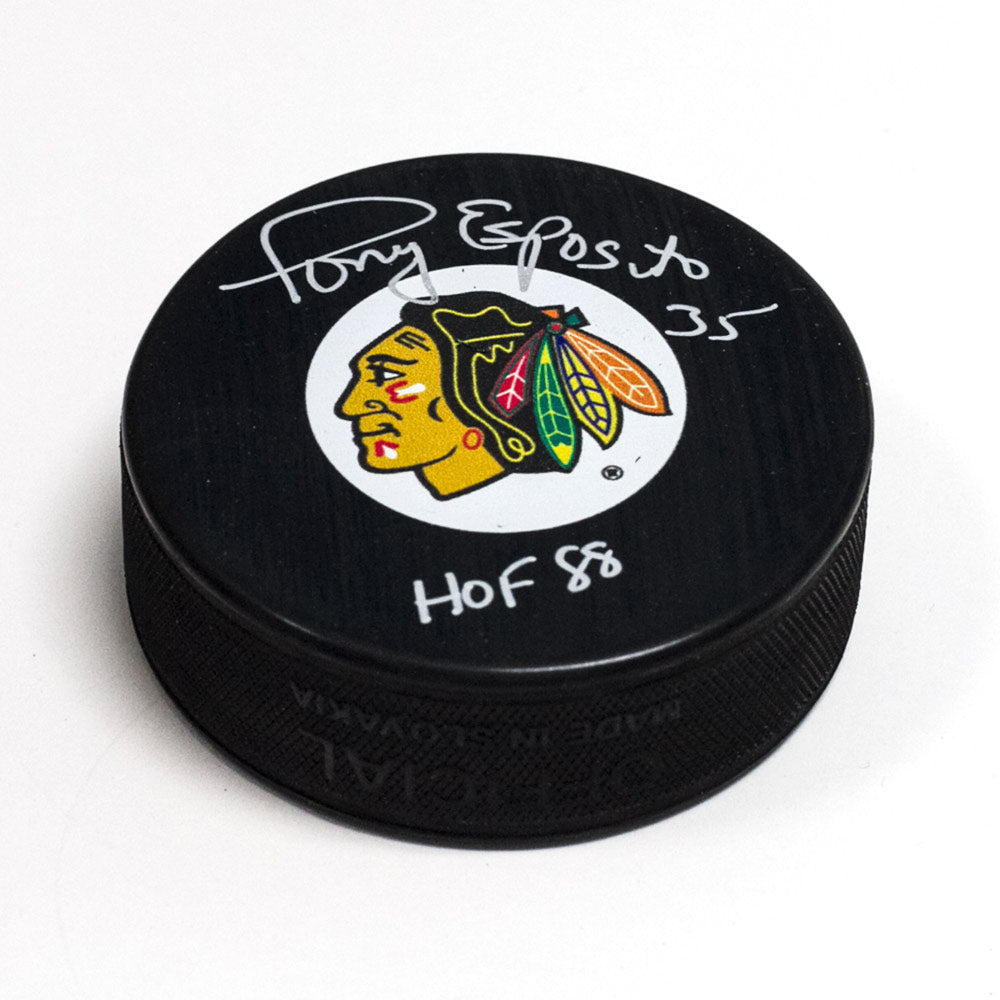 Tony Esposito Signed Chicago Blackhawks Hockey Puck with HOF Note