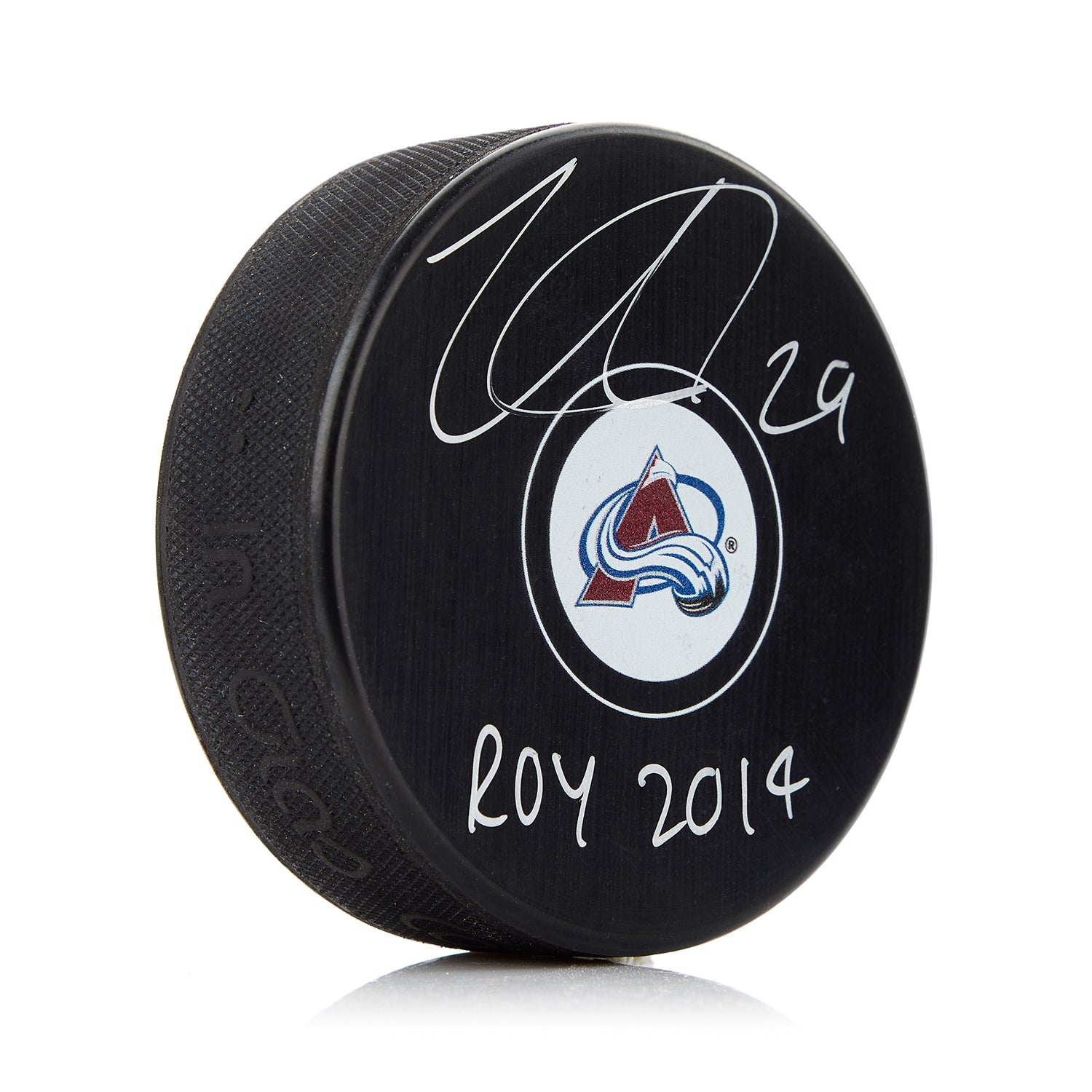 Nathan MacKinnon Colorado Avalanche Signed Puck with ROY Note