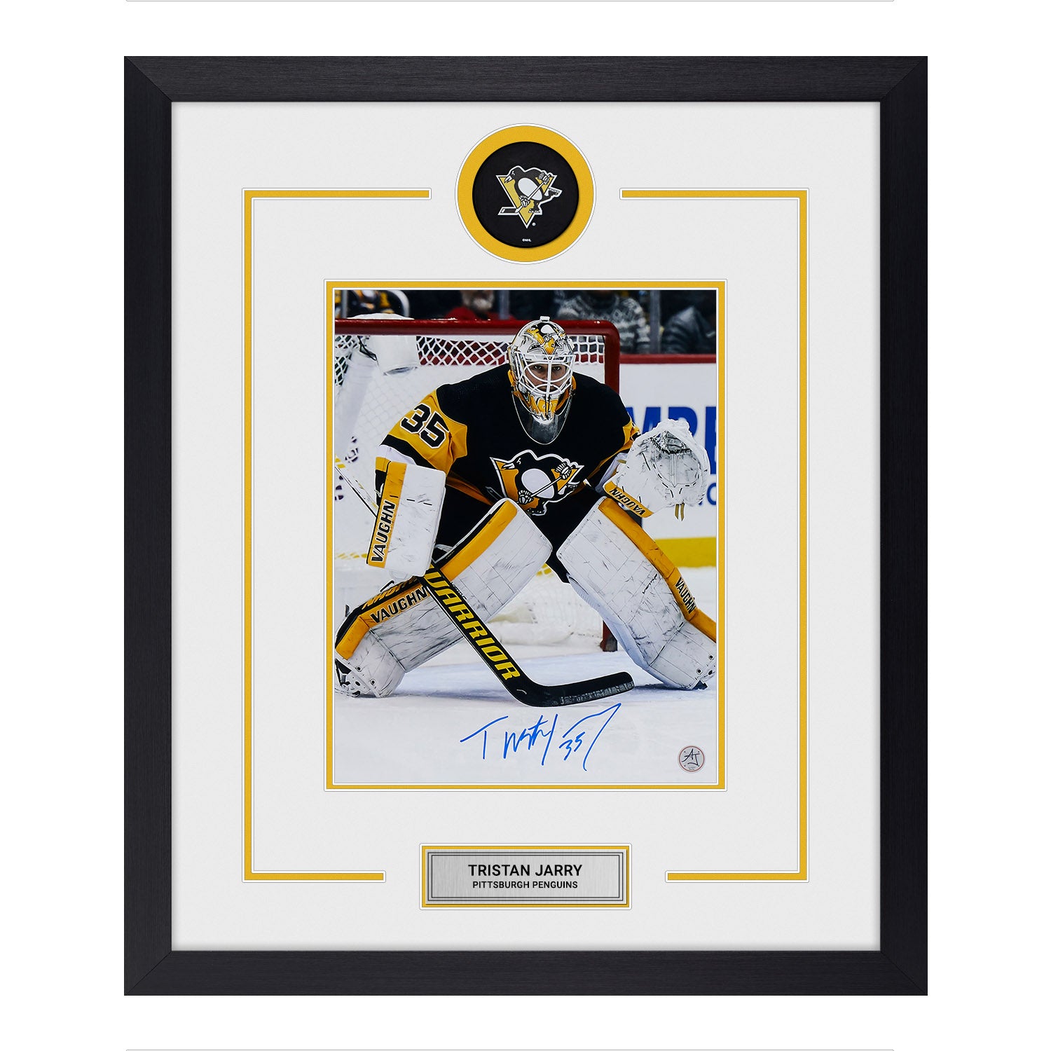Tristan Jarry Autographed Pittsburgh Penguins Puck Display 23x27 Frame