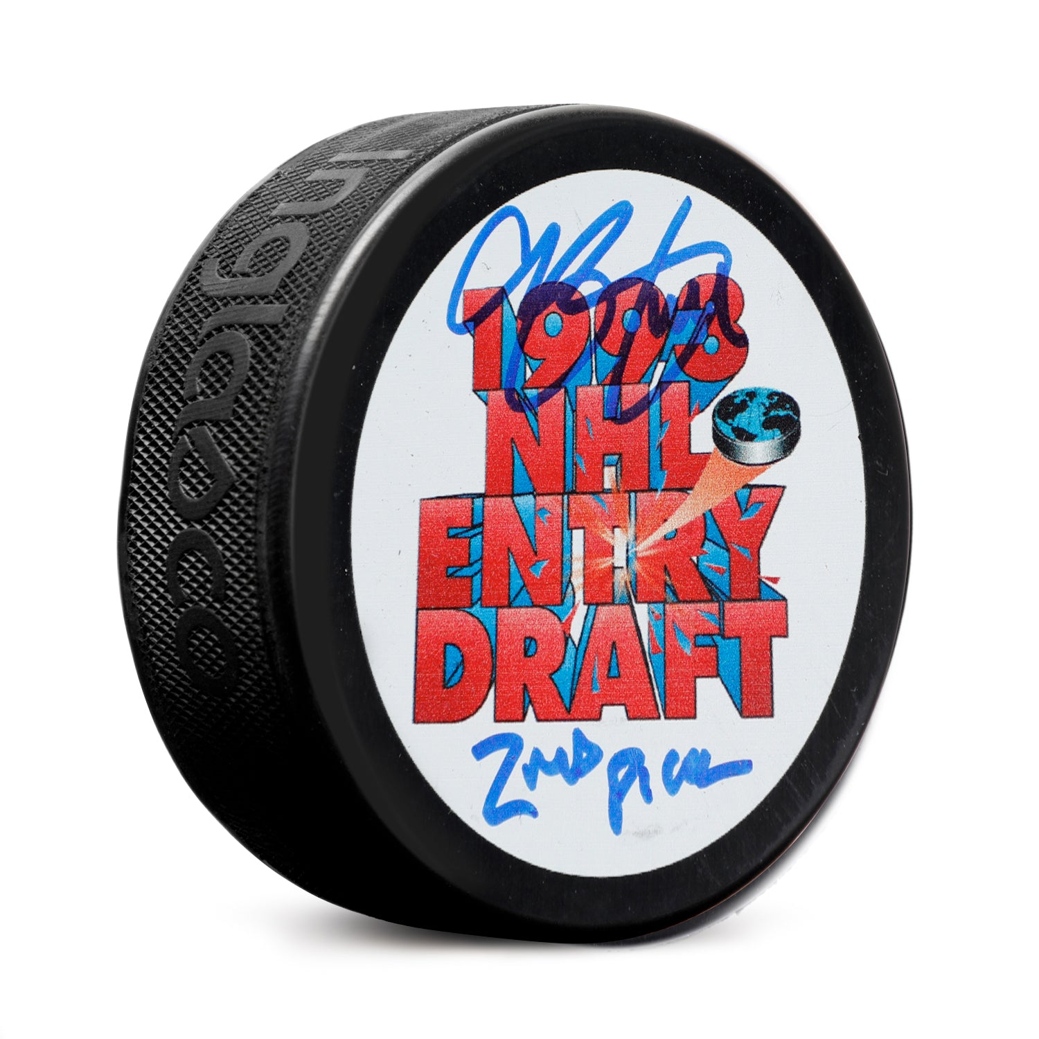 Chris Pronger Signed 1993 NHL Entry Draft Puck with 2nd Pick Note