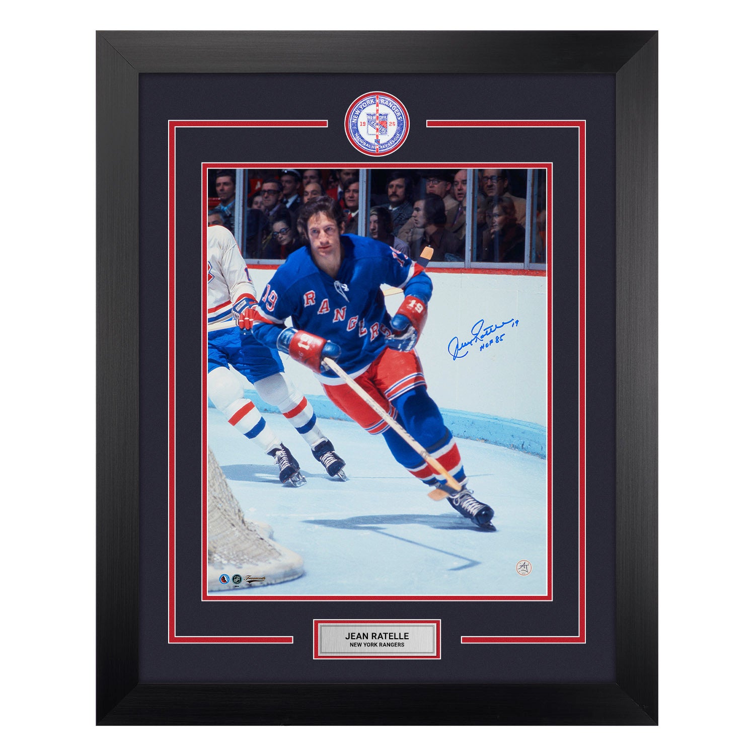 Jean Ratelle Signed New York Rangers Centre Ice Hockey 26x32 Frame