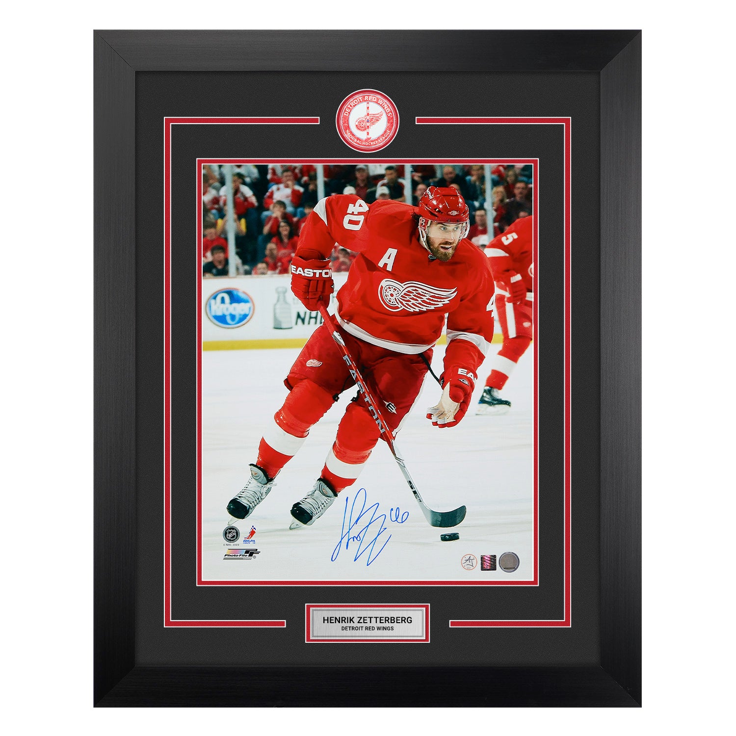 Henrik Zetterberg Autographed Detroit Red Wings Centre Ice Stickhandling 26x32 Frame