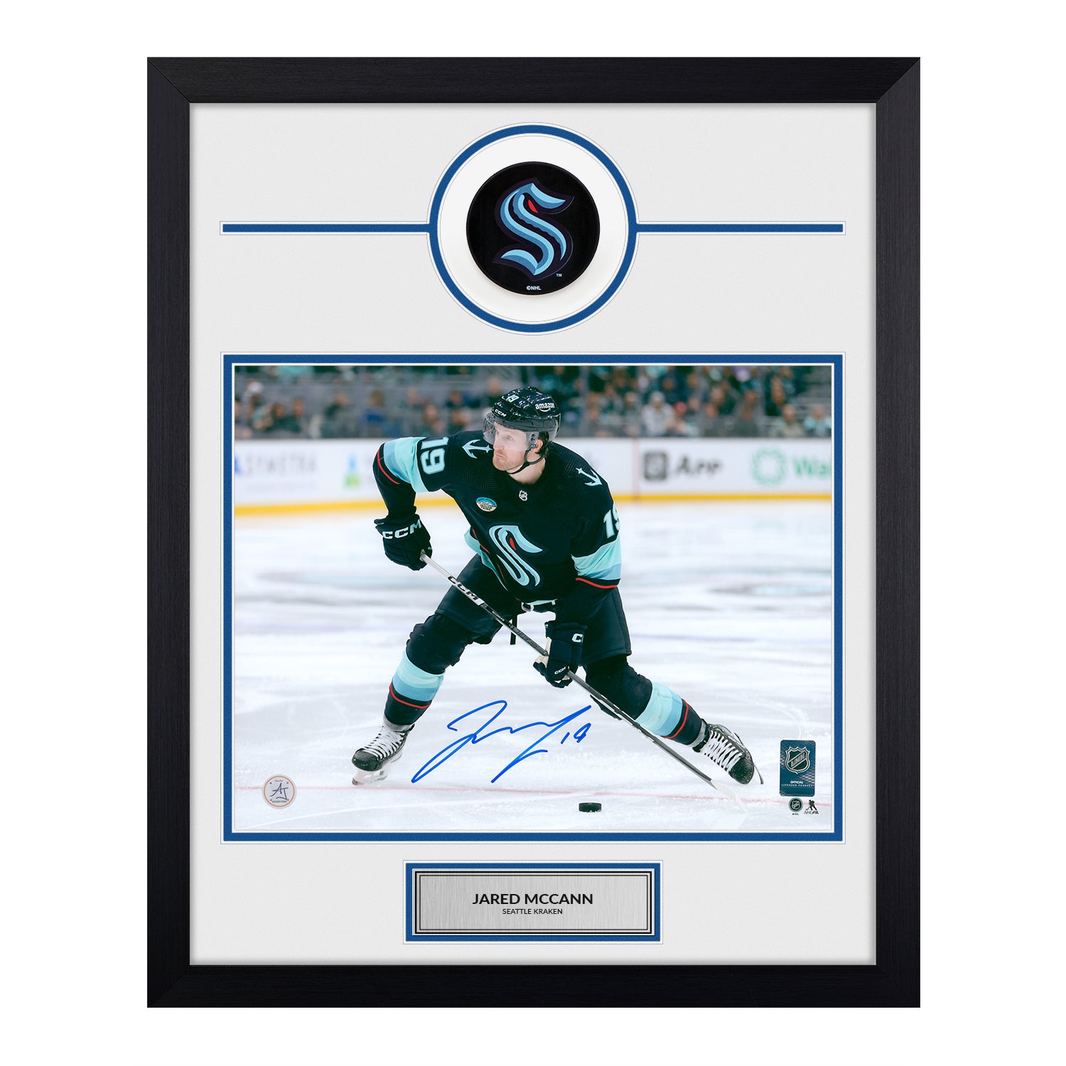 Jared McCann Autographed Seattle Kraken Attack Zone Puck Logo 19x23 Frame