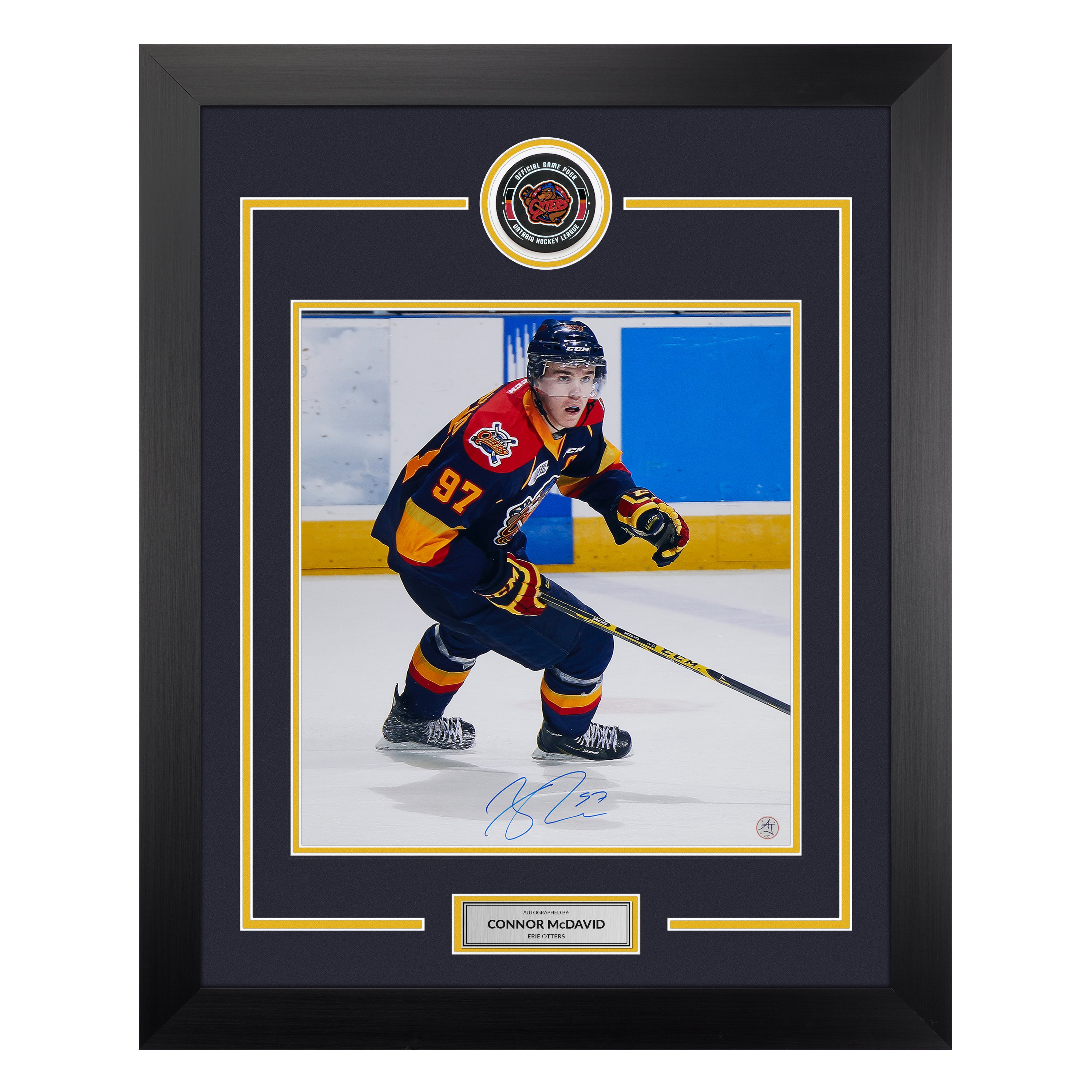 Connor McDavid Autographed Erie Otters Puck Logo 26x32 Frame