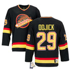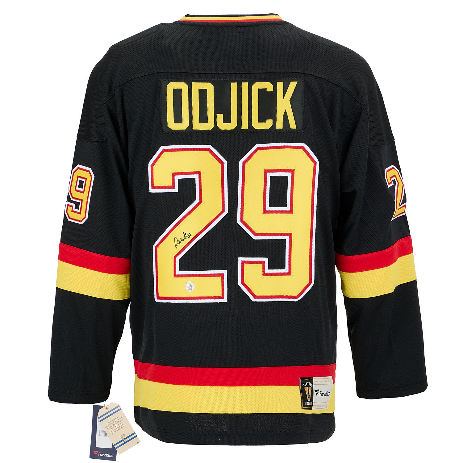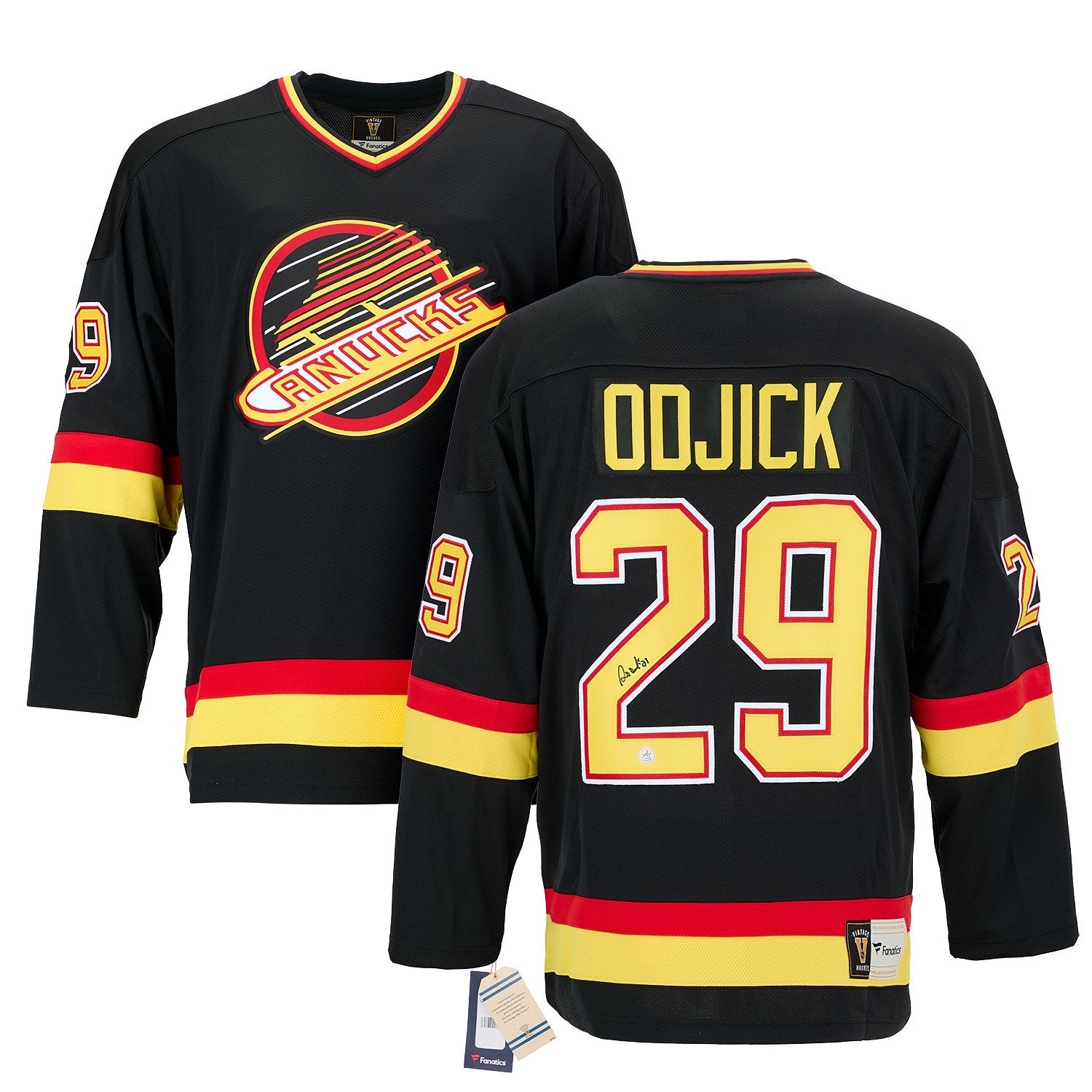 Gino Odjick Autographed Vancouver Canucks Black Fanatics Throwback Jersey