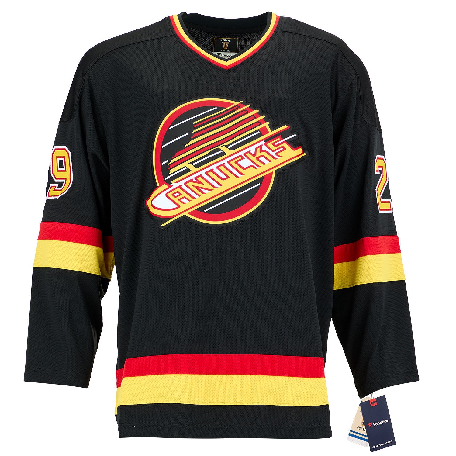 • Vancouver Canucks Skate Logo Black Throwback Fanatics Breakaway Jersey