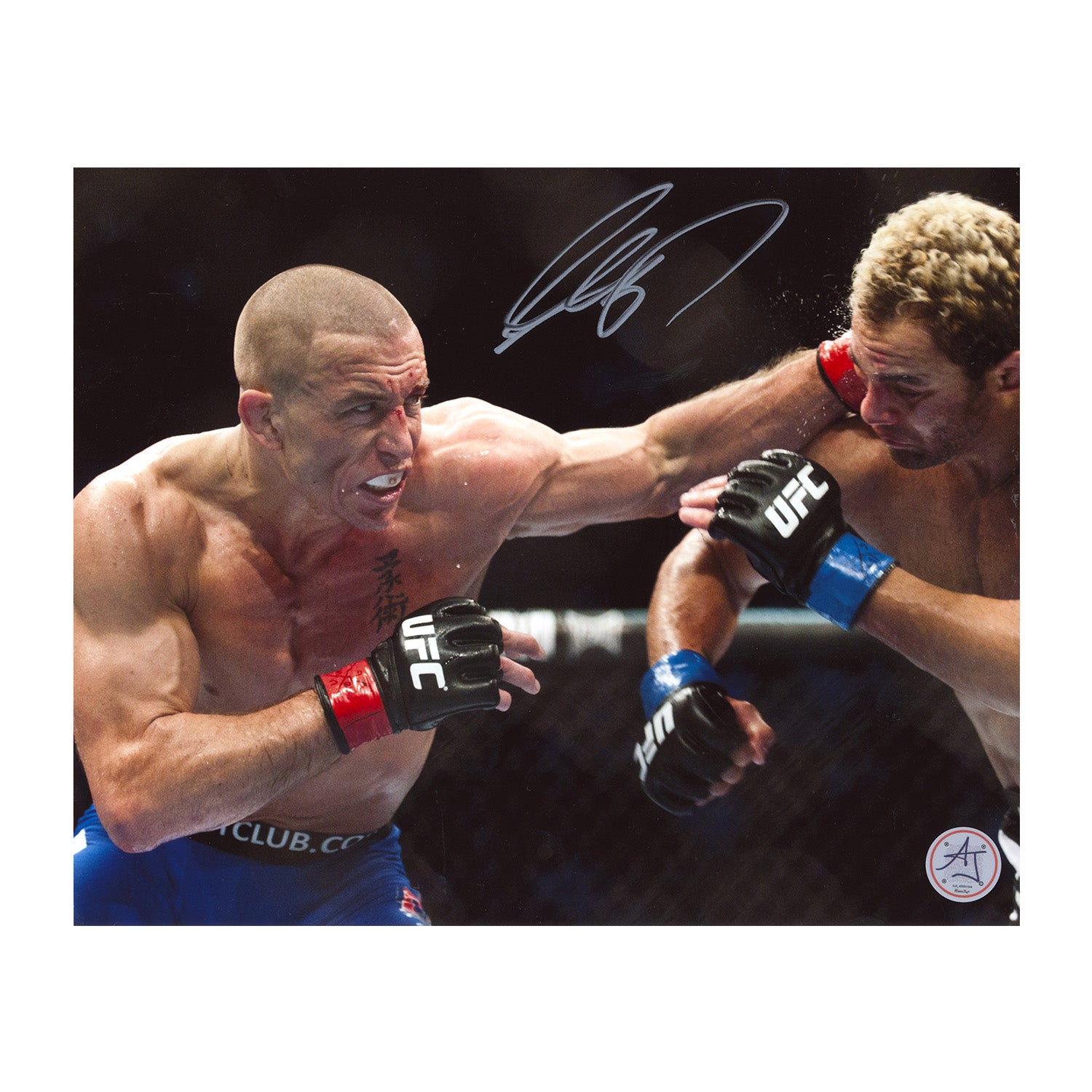 Georges St-Pierre Autographed UFC Martial Arts Punch 8x10 Photo