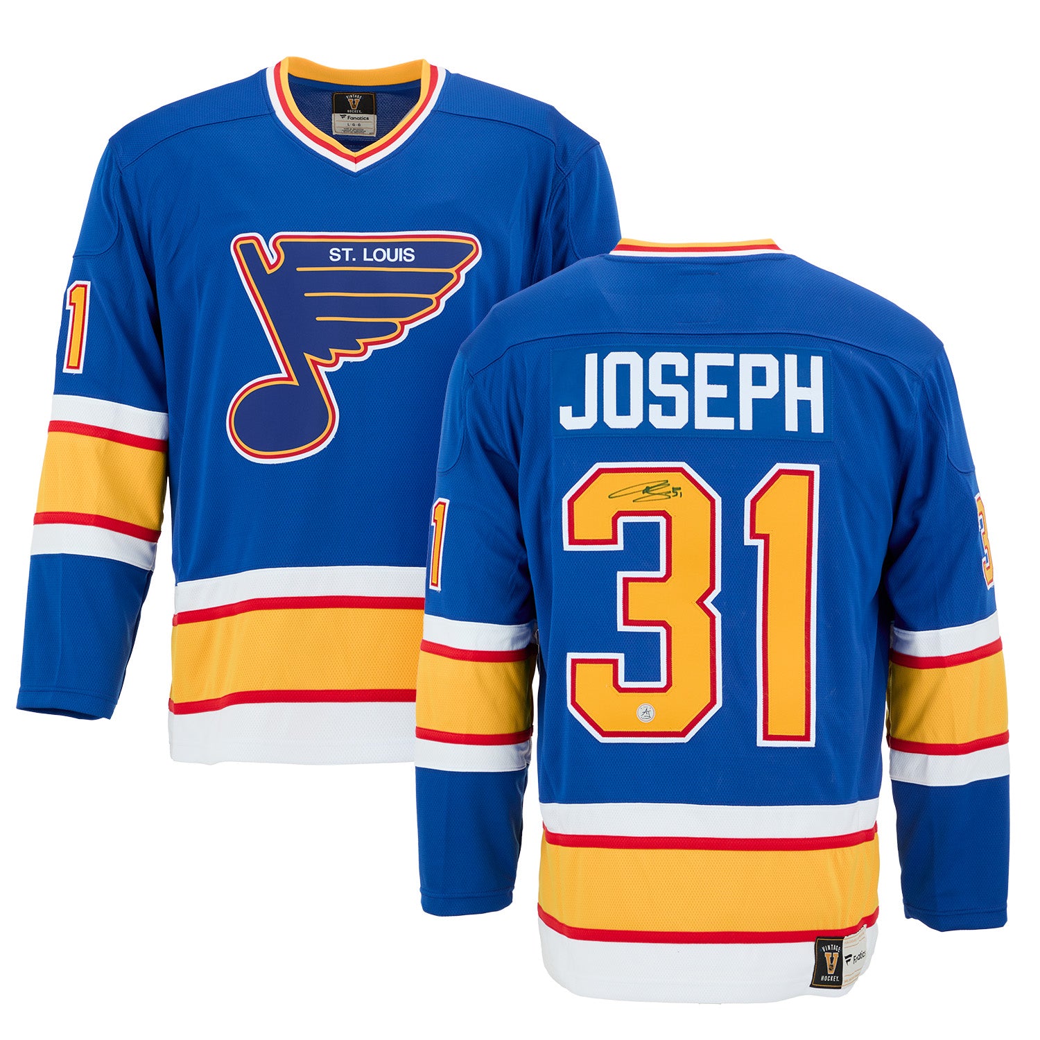 Curtis Joseph Autographed St Louis Blues Fanatics Throwback Jersey