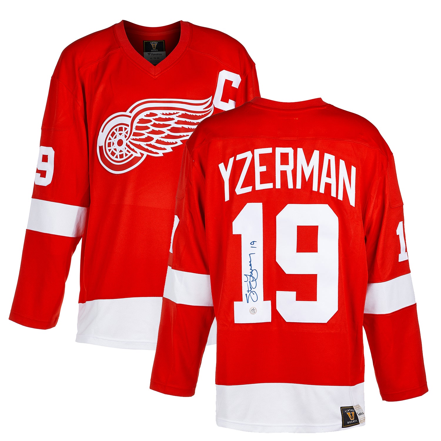 • This hockey jersey is hand-signed by Steve Yzerman.