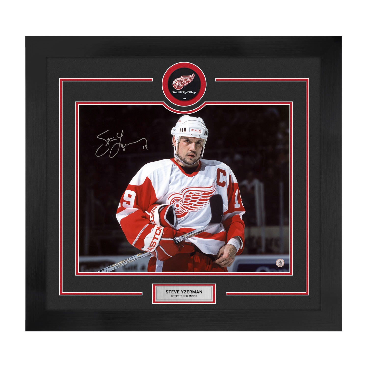 Steve Yzerman Autographed Detroit Red Wings Puck Logo 28x30 Frame