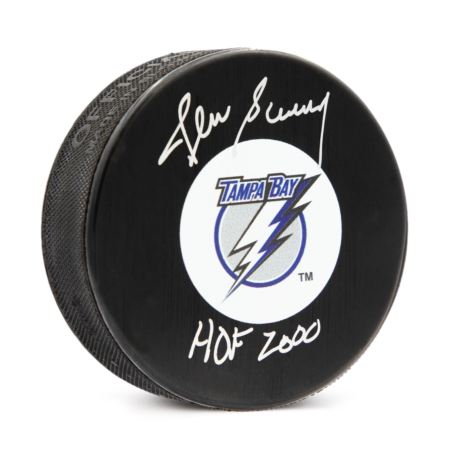 Denis Savard Autographed Tampa Bay Lightning Retro Logo Puck with HOF Note