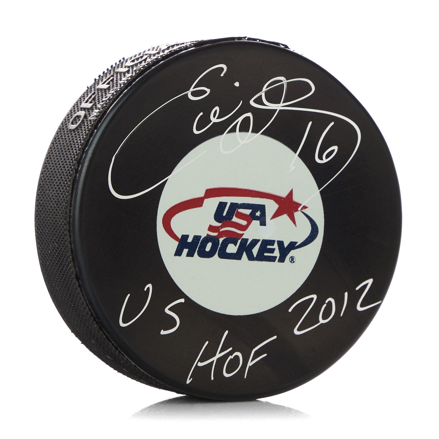 Ed Olczyk Autographed Team USA Hockey Puck with HOF Note
