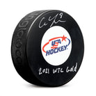 Cam York Autographed Team USA Hockey Puck with 2021 WJC Gold Note