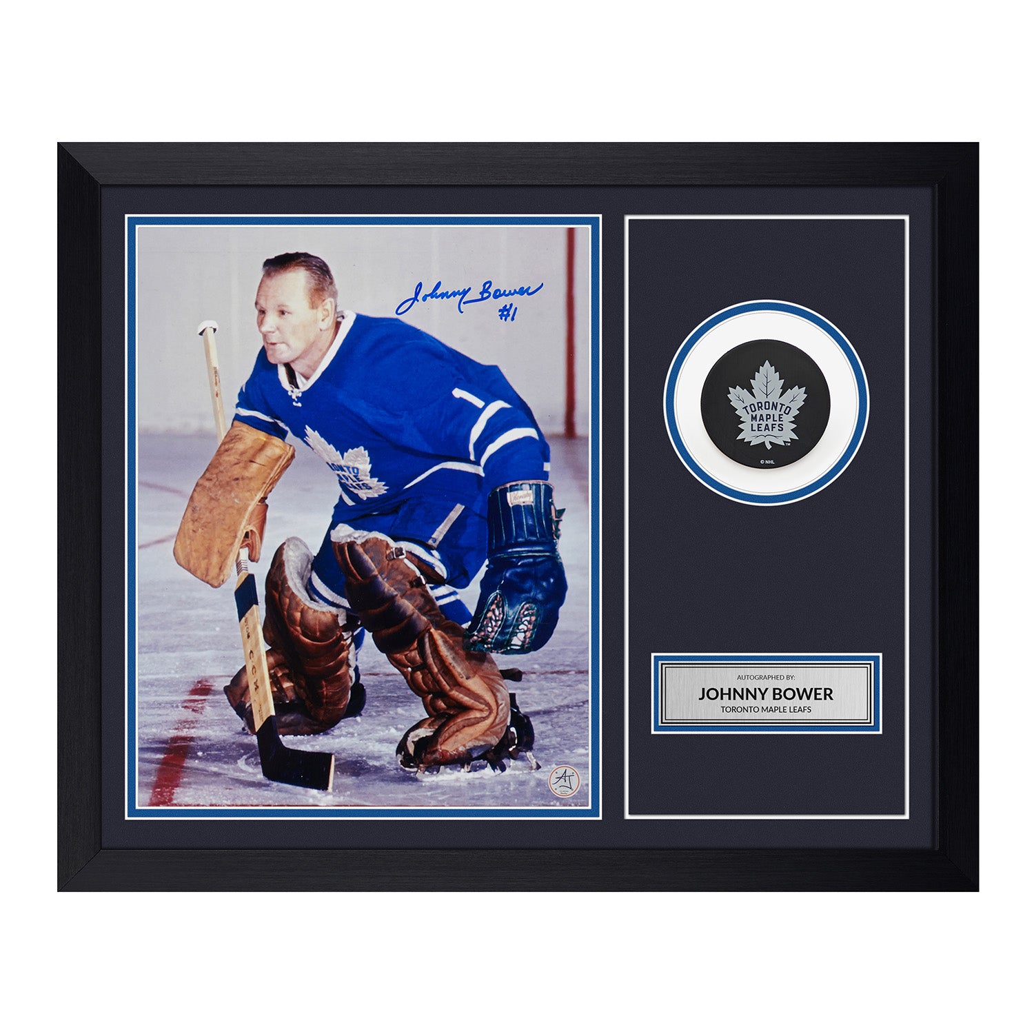 Johnny Bower Signed Toronto Maple Leafs Puck Display 19x23 Frame