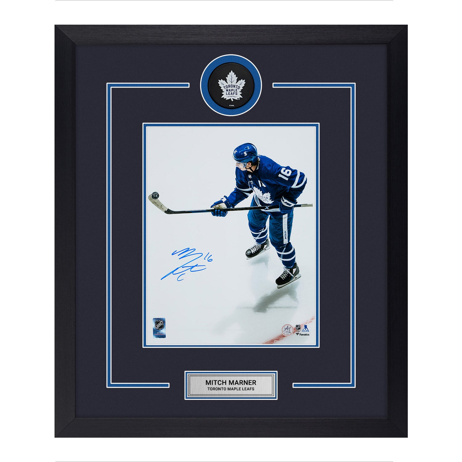 Mitch Marner Signed Toronto Maple Leafs Puck Master 23x27 Frame