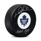 Darryl Sittler Autographed Toronto Maple Leafs Retro Logo Puck with HOF Note