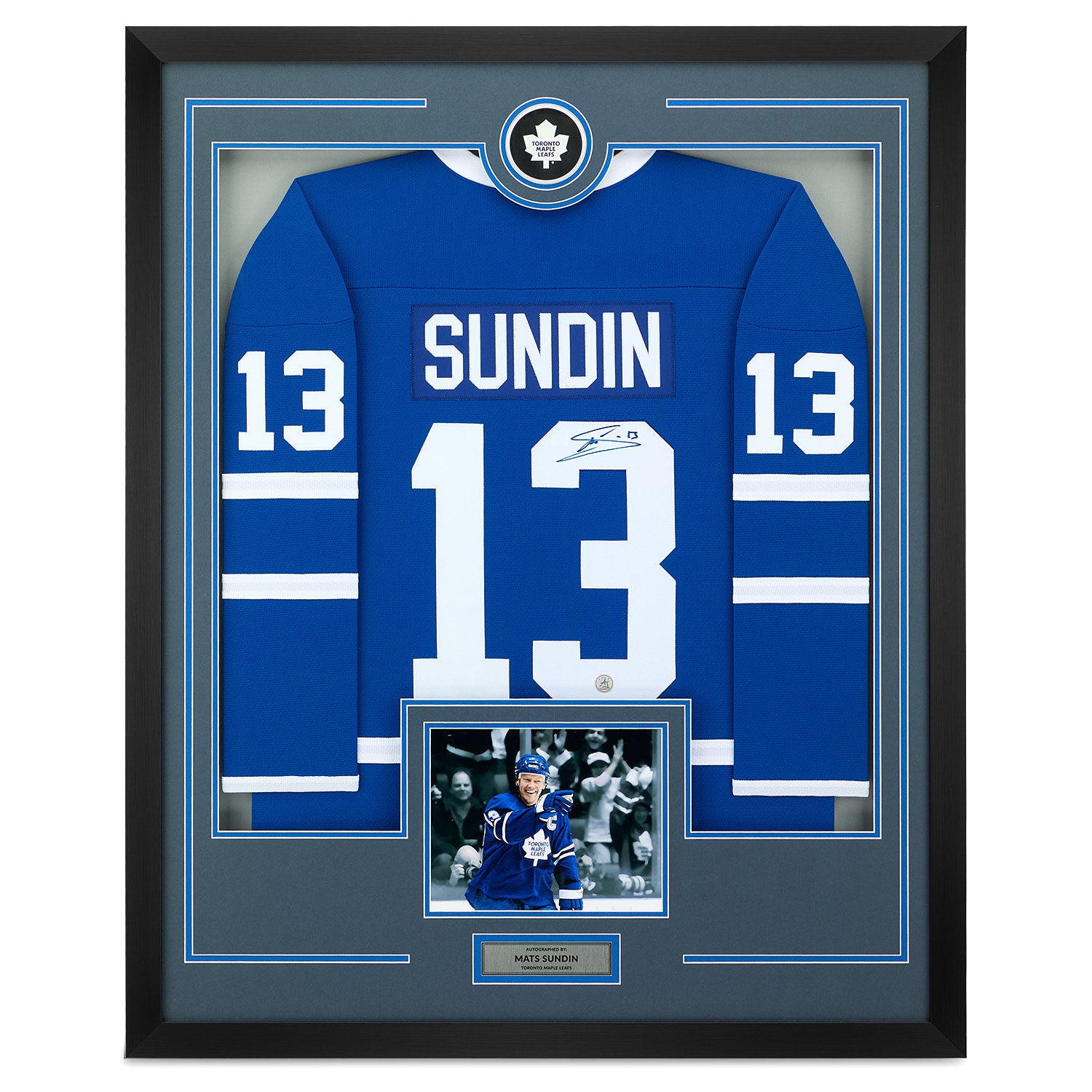 Mats Sundin Signed Toronto Maple Leafs Puck Logo 36x44 Jersey Frame