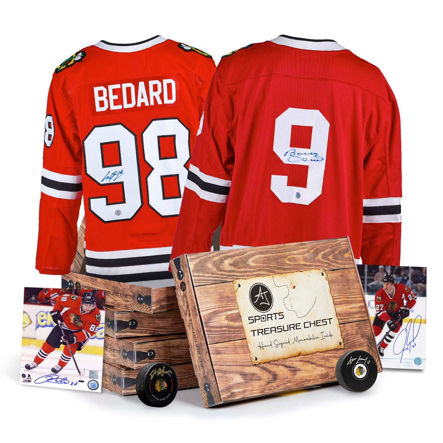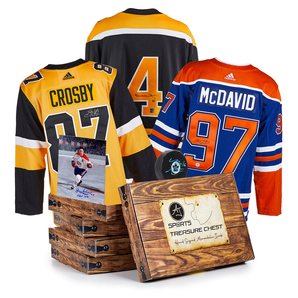 Enjoy collecting with a sealed Treasure Chest from AJ Sports. Rip open to find individually hand signed jerseys, photos and hockey pucks. Features hundreds of unique autographs.