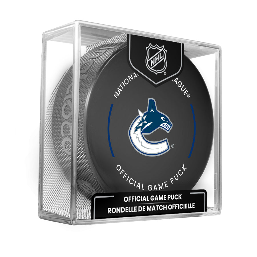 Vancouver Canucks 2023-24 NHL Official Game Puck with Display Case